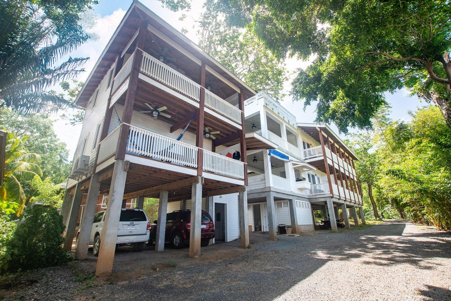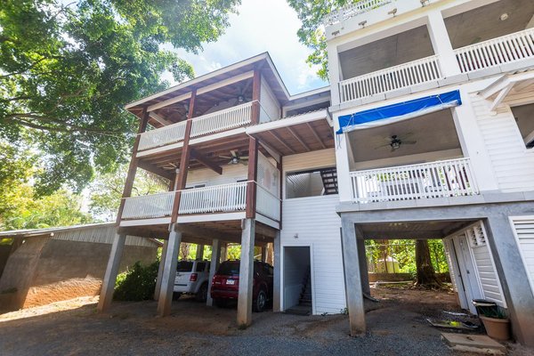 Das Hauptgebäude besteht aus 3 Etagen mit insgesamt 8 Mieteinheiten. Im ersten Stock befinden sich 5 überdachte Parkplätze, eine Toilette für Mitarbeiter oder Gäste und eine Waschküche mit viel Platz für betriebliche Bedürfnisse. Die zweite Etage umfasst 1 komplette Eigentumswohnung mit Küche, Bad und Wohn-/Schlafbereich sowie 3 Einzelzimmer mit jeweils eigenem Bad und Balkon sowie eine voll ausgestattete Gemeinschaftsküche. Die dritte Etage verfügt über eine weitere komplette Eigentumswohnung mit Küche, Bad, Wohn-/Schlafbereich und einer großen Terrasse sowie 3 Einzelzimmer mit eigenem Bad und Balkon sowie einen gemeinsamen Wohnbereich.