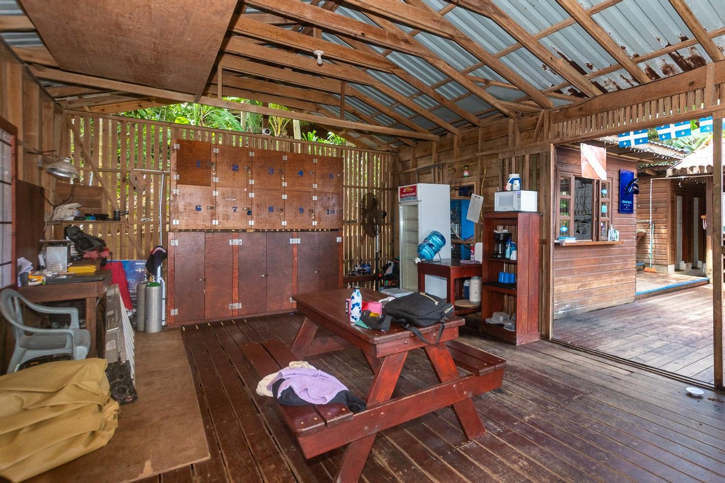 Das 1.900 m² große Tauchcenter verfügt über einen direkten Zugang zum Strand und eine voll ausgestattete Infrastruktur, darunter 3 Toiletten für Gäste und Personal, 2 Hochleistungskompressoren, einen Ausrüstungsraum mit 28 Ausrüstungsschränken, ein Klassenzimmer für Tauchtheorie und -vorbereitung sowie eine komplette Tauchausrüstung. Eine Flotte von Booten, Autos, Motorrädern, 4 Kajaks, 2 Paddleboards und Angelausrüstung ist inbegriffen.