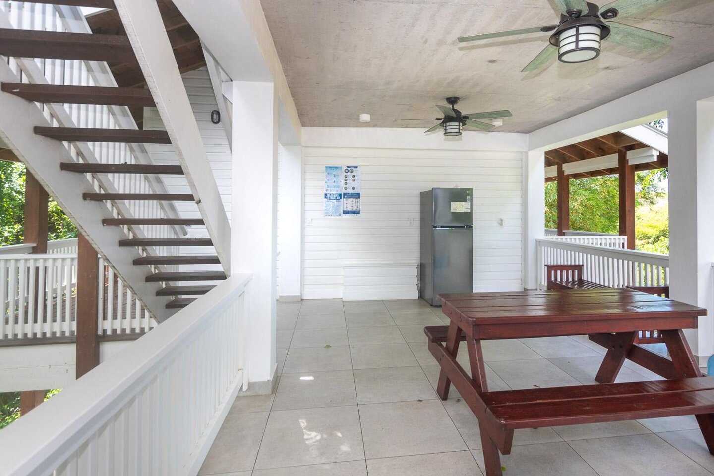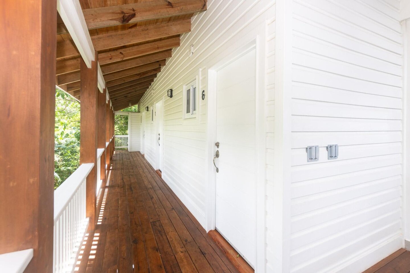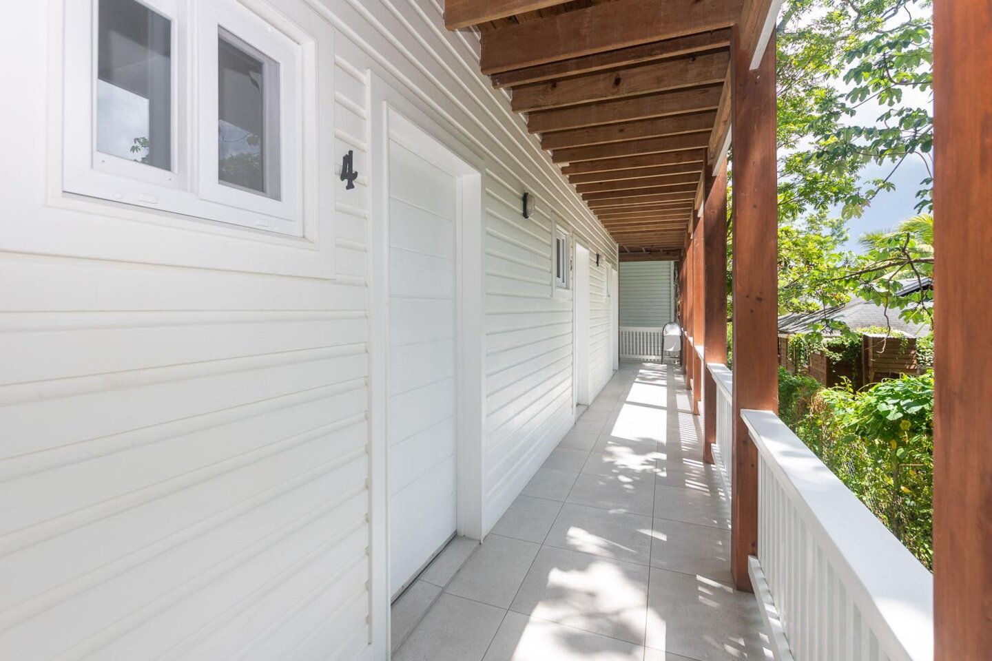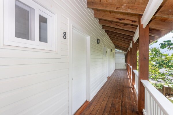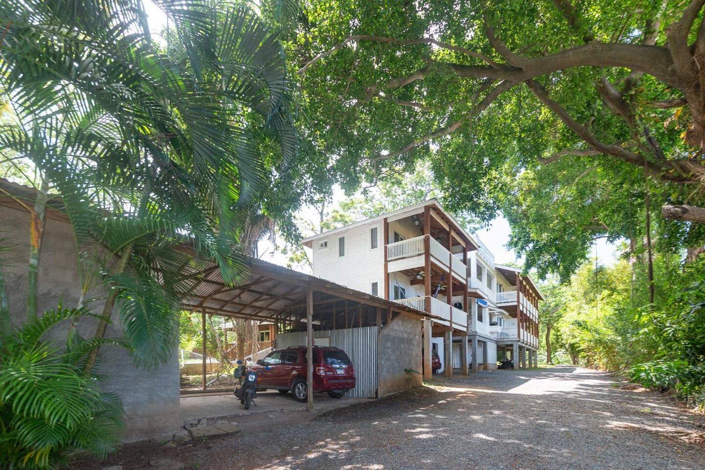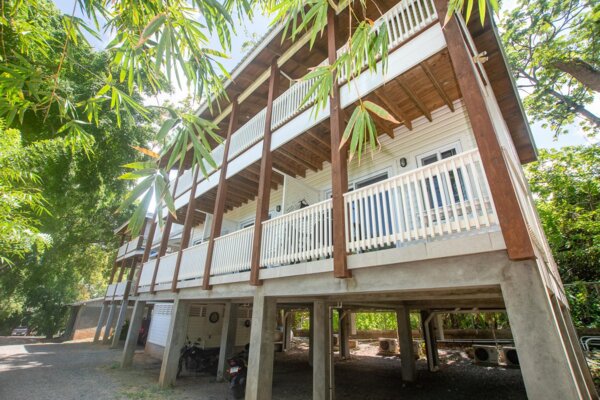 Das Hauptgebäude besteht aus 3 Etagen mit insgesamt 8 Mieteinheiten. Im ersten Stock befinden sich 5 überdachte Parkplätze, eine Toilette für Mitarbeiter oder Gäste und eine Waschküche mit viel Platz für betriebliche Bedürfnisse. Die zweite Etage umfasst 1 komplette Eigentumswohnung mit Küche, Bad und Wohn-/Schlafbereich sowie 3 Einzelzimmer mit jeweils eigenem Bad und Balkon sowie eine voll ausgestattete Gemeinschaftsküche. Die dritte Etage verfügt über eine weitere komplette Eigentumswohnung mit Küche, Bad, Wohn-/Schlafbereich und einer großen Terrasse sowie 3 Einzelzimmer mit eigenem Bad und Balkon sowie einen gemeinsamen Wohnbereich.