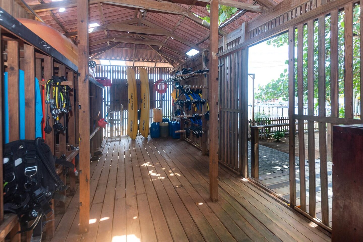 Zur Ausrüstung der Tauchbasis gehören ein Coltri MCH16 Luft-/Nitrox-Kompressor, ein Coltri MCH22 Luftkompressor, 22 Aqualung BCDs, 15 Apex-Atemregler, 28 Flossen, 18 Masken, 2 Paddleboards, 2 Doppelkajaks, 2 Einzelkajaks, 40 Luftflaschen und 18 Nitroxflaschen.
