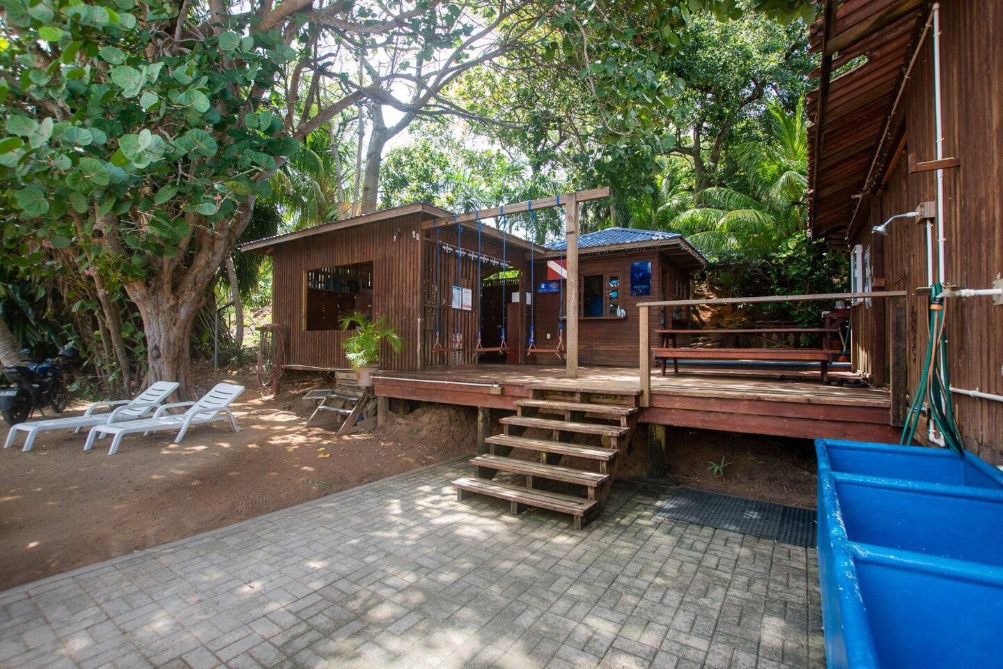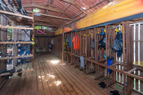 Das 1.900 m² große Tauchcenter verfügt über einen direkten Zugang zum Strand und eine voll ausgestattete Infrastruktur, darunter 3 Toiletten für Gäste und Personal, 2 Hochleistungskompressoren, einen Ausrüstungsraum mit 28 Ausrüstungsschränken, ein Klassenzimmer für Tauchtheorie und -vorbereitung sowie eine komplette Tauchausrüstung. Eine Flotte von Booten, Autos, Motorrädern, 4 Kajaks, 2 Paddleboards und Angelausrüstung ist inbegriffen.
