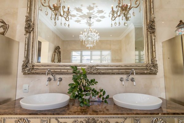 Die malerische Auffahrt und der große Eingang geben den Ton dessen an, was Sie erwartet, von der großen Treppe und dem doppelstöckigen Eingang, der bis zur Empfangslounge, dem formellen Esszimmer und der formellen Lounge übergeht. Elegante Kronleuchter schmücken die Empfangsräume mit zeitloser Anmut. Gläserne Stapeltüren schaffen die durchgehende Verbindung und eine harmonische Verschmelzung von Innen und Außen zu einem überdachten Unterhaltungsbereich, dem wunderschön angelegten Garten in ruhiger Umgebung.