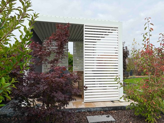 - Er bietet diverse Sitzplätze in verschiedene Ausrichtungen, welche stets sichtgeschützt angelegt wurden
