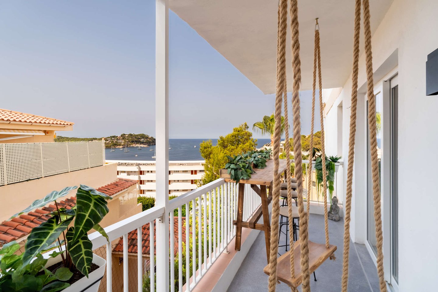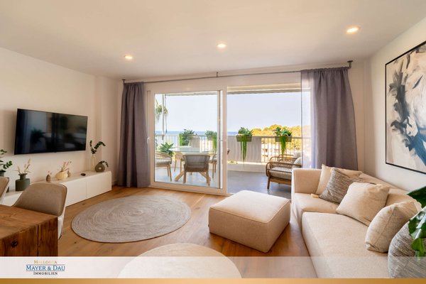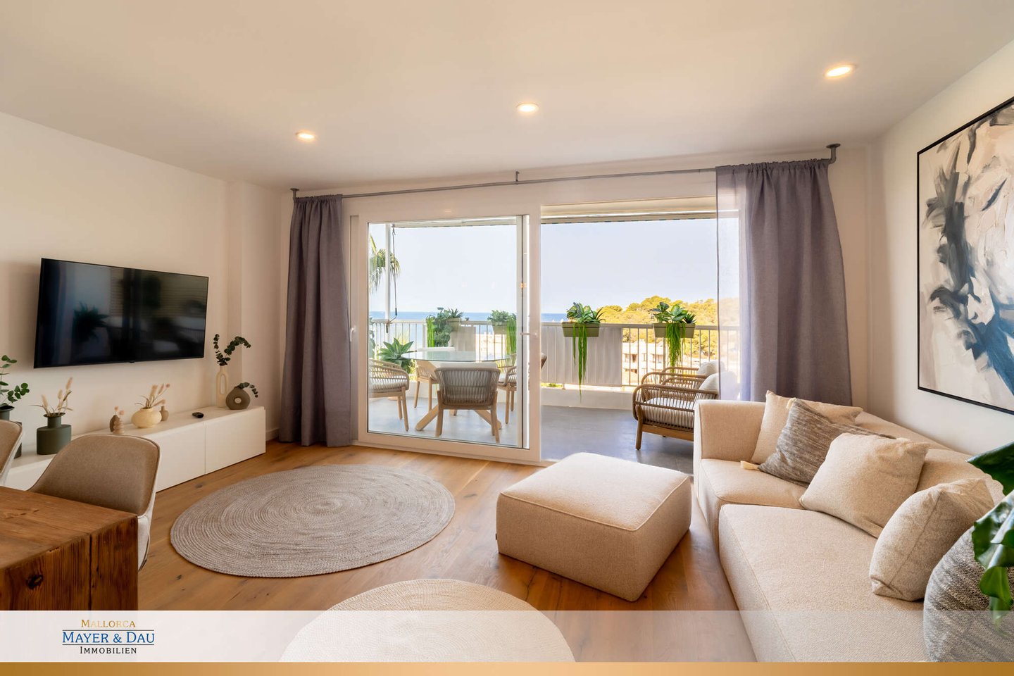 Stellen Sie sich vor, wie Sie in einer traumhaft kernsanierten Wohnung in Santa Ponsa aufwachen – stilvoll, hochwertig möbliert und mit einem atemberaubenden Meerblick. Diese exklusive Immobilie ist komplett EINGERICHTET und sofort bezugsbereit – einfach ankommen, auspacken und genießen!