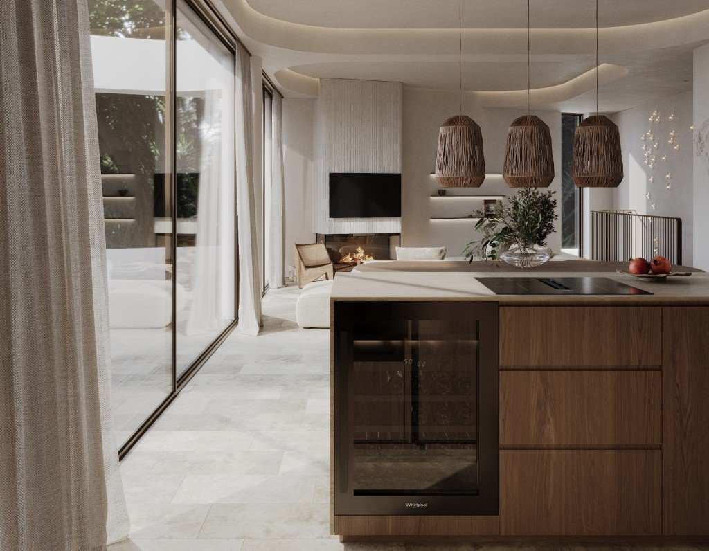 Jede Residenz verfügt über drei Schlafzimmer und drei Badezimmer – zwei davon en suite – sowie eine günstig gelegene Gästetoilette. Der geräumige, offen gestaltete Wohn- und Essbereich wird durch eine maßgeschneiderte Designerküche ergänzt, die mit hochwertigen Einbaugeräten von Gaggenau und Miele ausgestattet ist. Übergroße Glasschiebetüren reichen vom Boden bis zur Decke, füllen den Innenraum mit Tageslicht und schaffen einen nahtlosen Übergang zu den privaten Außenbereichen.