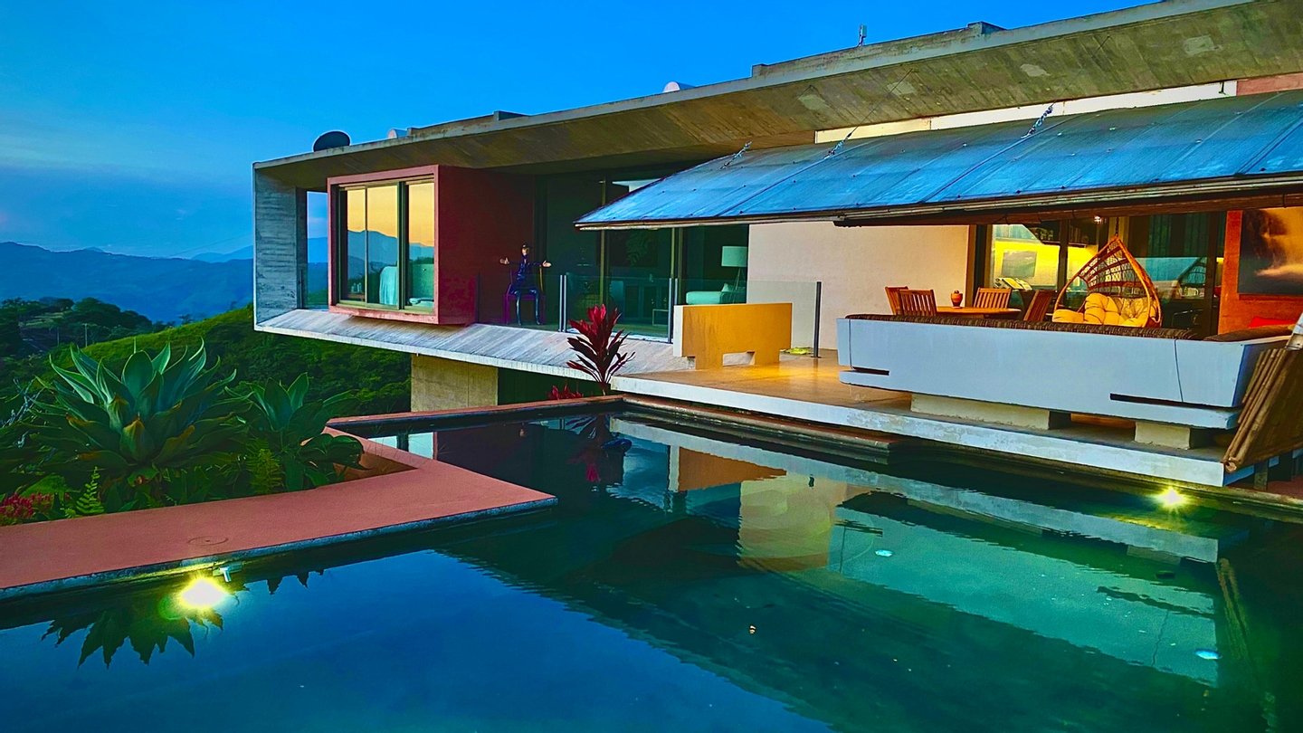 Elegant über der malerischen Stadt Atenas gelegen, ist das The Glass Farmhouse ein markantes architektonisches Statement - eine inspirierte Verschmelzung von modernem Design und tropischer Ruhe. Eingebettet in die prestigeträchtige Wohnanlage Vista Atenas bietet dieses außergewöhnliche Anwesen einen atemberaubenden Panoramablick auf das Zentraltal von Costa Rica, die glitzernde Skyline von San José und die fernen Silhouetten der Vulkangipfel.