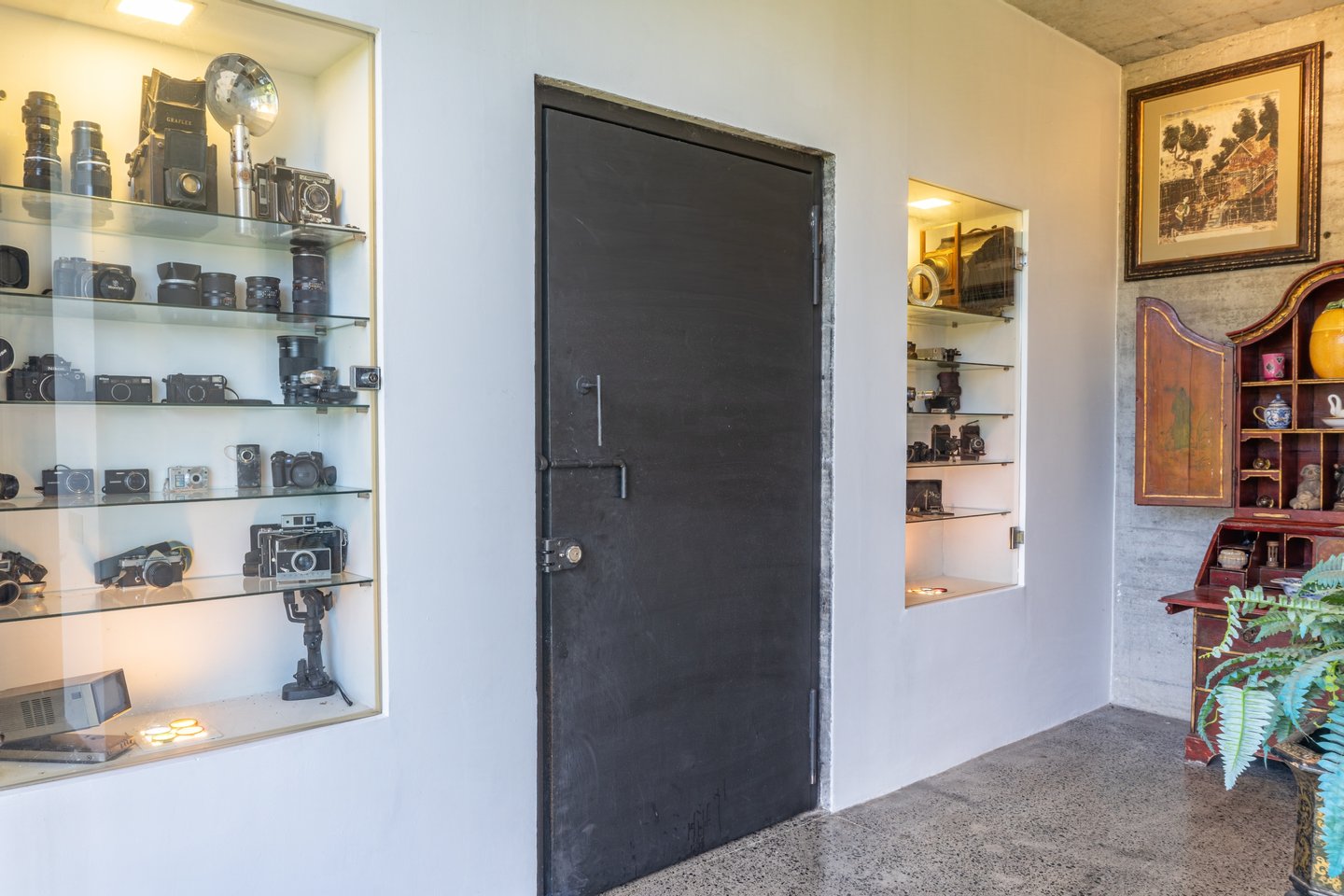 Ein formeller Eingang begrüßt Sie in einer Kochküche, die mit Quarz-Arbeitsplatten, hochwertigen Edelstahlgeräten und maßgefertigten Schränken ausgestattet ist. Die angrenzenden Ess- und Wohnbereiche gehen nahtlos in einen privaten Unterhaltungsbereich mit einem herunterklappbaren Filmprojektor und weitläufigen Terrassen für Zusammenkünfte im Freien über.