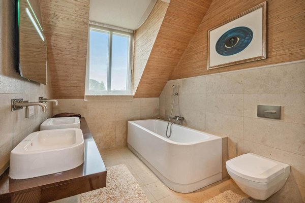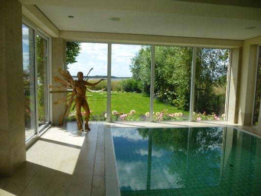 10 Zimmer, 4 Bäder, sowie eine Sauna und ein aussenliegender Jacuzzi. Hochwertige Ausstattung. Privater Wasserzugang. Großzügiger Garten.
