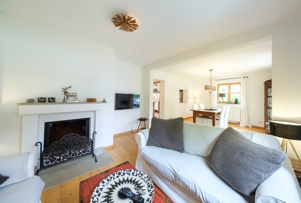 Liebevoll gestaltete Details, ein Kamin im Wohnzimmer sowie ein schöner Garten lassen ein charmantes Zuhause entstehen. Ein klar gestalteter Grundriss mit fünf Schlafzimmern gibt Raum zur individuellen Nutzung als Haupt- oder Zweitwohnsitz.