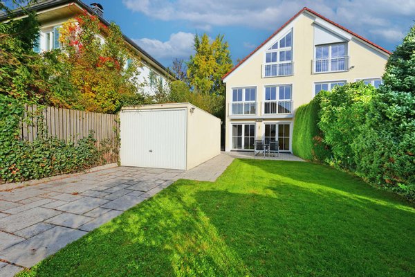 Diese moderne Doppelhaushälfte mit rund 201 m² Wohnfläche vereint stilvolle Architektur mit dem gewachsenen Charme einer ruhigen, etablierten Nachbarschaft. 2001 erbaut und gerade frisch modernisiert, präsentiert sie sich heute in zeitgemäßem Glanz – hell, einladend und voller Leichtigkeit. Das sonnige, 392 m² große Grundstück bietet mit liebevoll angelegtem Garten, Gartenhäusern und zwei großzügigen Terrassen einen Ort zum Aufatmen, Ankommen und Wohlfühlen – perfekt für Familien, die Natur, Ruhe und Stadtnähe harmonisch verbinden möchten.