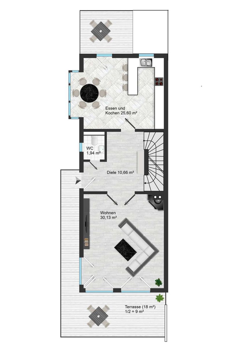 - Staffelmietvertrag mit jährlich 3% Mietanpassung (Inflationsausgleich)