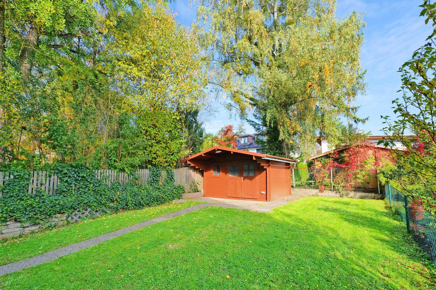 Das Herzstück: Ein eingewachsener, liebevoll angelegter Garten – ein echtes Familienparadies, in dem Ruhe, Spiel und Natur harmonisch verschmelzen.