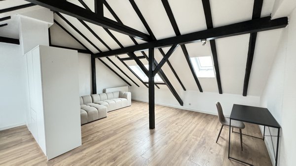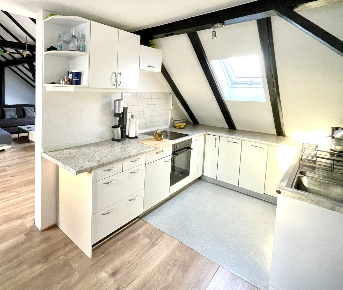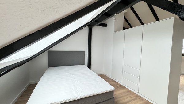 Offen gestaltetes Studio Apartment im Dachgeschoss eines ruhigen 3 Parteien Mehrfamilienhauses auf großem Grundstück in grüner Lage mit schneller Anbindung zu öffentlichen Verkehrsmitteln in Seligenstadt – Froschhausen.