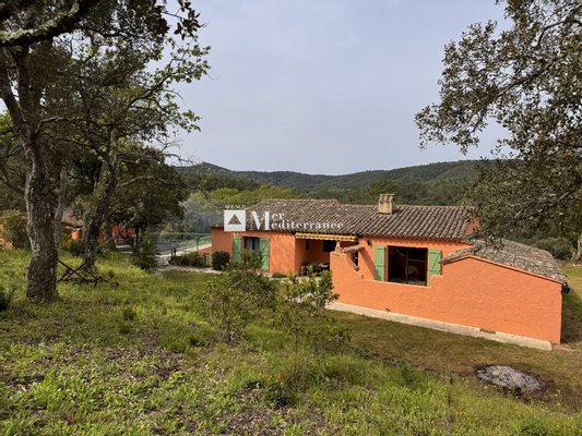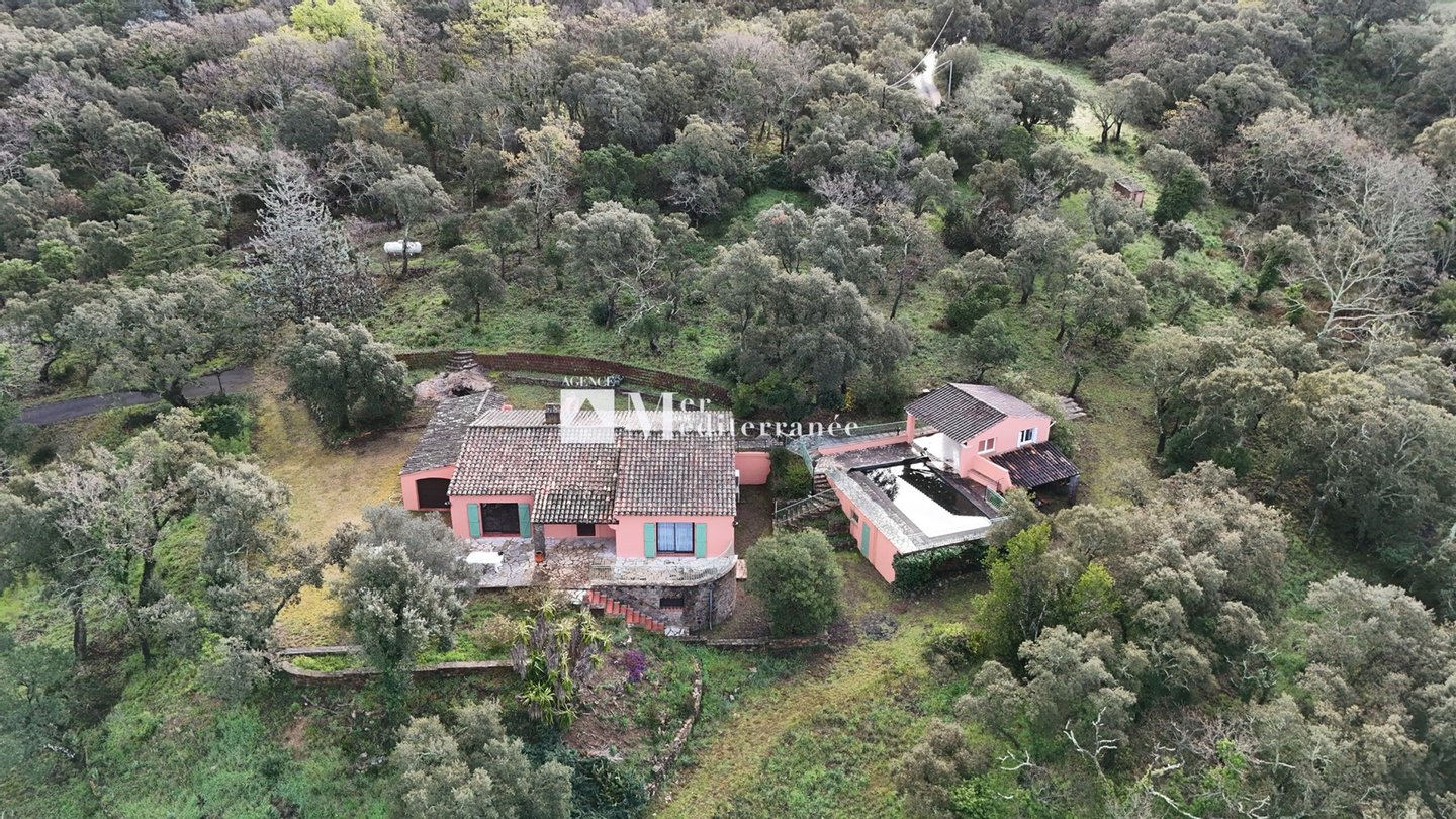 ALLEINVERTRETER - Klimatisiertes Haus mit einer Fläche von 163,76 m2, begleitet von einer Wohnung von ca. 66 m2. Auf einer Ebene auf einem weitläufigen bewaldeten Grundstück von 56.920 m2 gelegen, bietet Ihnen dieses Anwesen absolute Ruhe sowie einen atemberaubenden Blick auf die umliegenden Hügel und Wälder. Das Haus besteht aus einem großen Eingang, einem geräumigen Wohnzimmer mit hohen Decken und einem Kamin mit Einsatz, der eine warme Atmosphäre schafft. Sie finden auch eine separate Küche, einen Abstellschrank, eine separate Toilette sowie ein Schlafzimmer mit eigenem Duschbad und Ankleidezimmer. Ein zweites Schlafzimmer verfügt ebenfalls über ein eigenes Badezimmer, das mit einer Toilette, einer Dusche, einer Badewanne und einem Doppelwaschbecken ausgestattet ist. Darüber hinaus stehen Ihnen eine Garage und eine Waschküche zur Verfügung. Das Nebengebäude bietet eine Wohnung von ca. 66 m2, bestehend aus einem Schlafzimmer, einem Küchenbereich, einem Wohnzimmer, einem Duschbad, einer separaten Toilette und einem Abstellraum, ideal für den Empfang von Gästen oder für ein Vermietungsprojekt. Neben dem Nebengebäude entdecken Sie eine Werkstatt, ideal für Heimwerker. Im Außenbereich genießen Sie einen 8 x 4 m großen Chlorpool, der von einem 15 m2 großen Poolhaus begleitet wird. Die Heizung erfolgt über eine Gasanlage (Propan) und ein 37 m tiefes Bohrloch steht ebenfalls zur Verfügung. Es ist Arbeit zu erwarten, die es Ihnen ermöglicht, dieses Haus nach Ihrem Geschmack anzupassen. Diese Oase der Ruhe befindet sich in einer ruhigen und geschützten Umgebung, nur 5 km von Cogolin und 15 km von Saint-Tropez entfernt.