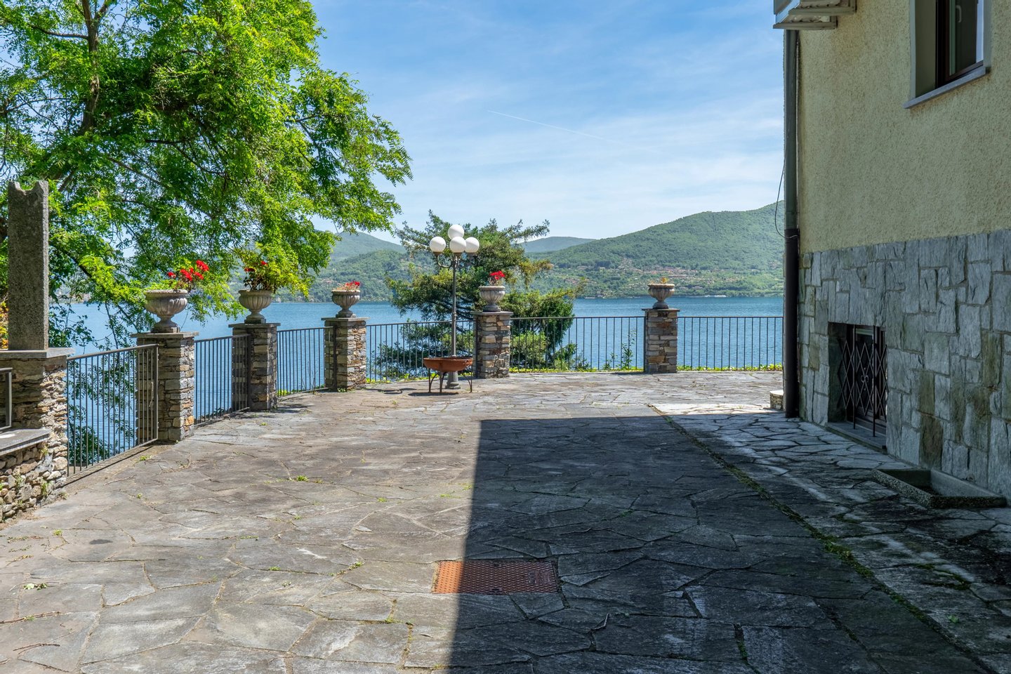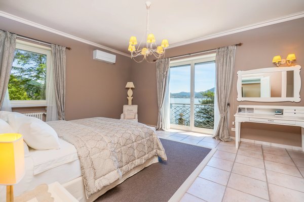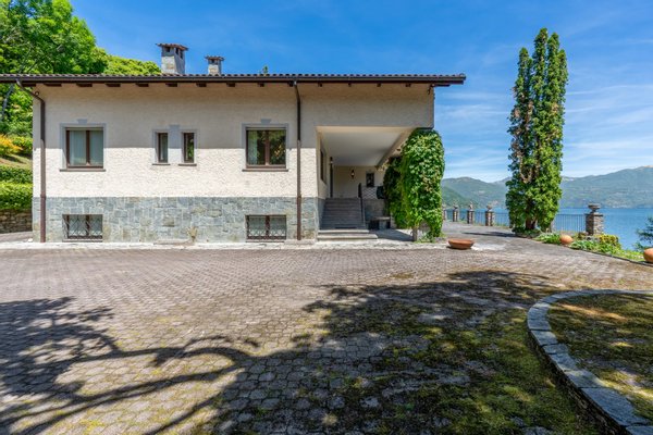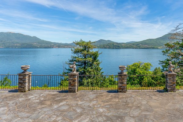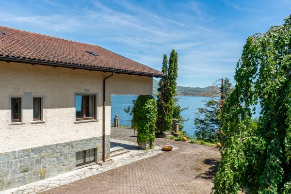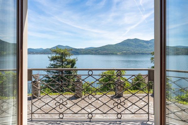 Am Eingang der Villa befindet sich ein großer Säulengang, ideal um den Blick auf den Lago Maggiore in einem schattigen Bereich zu genießen.