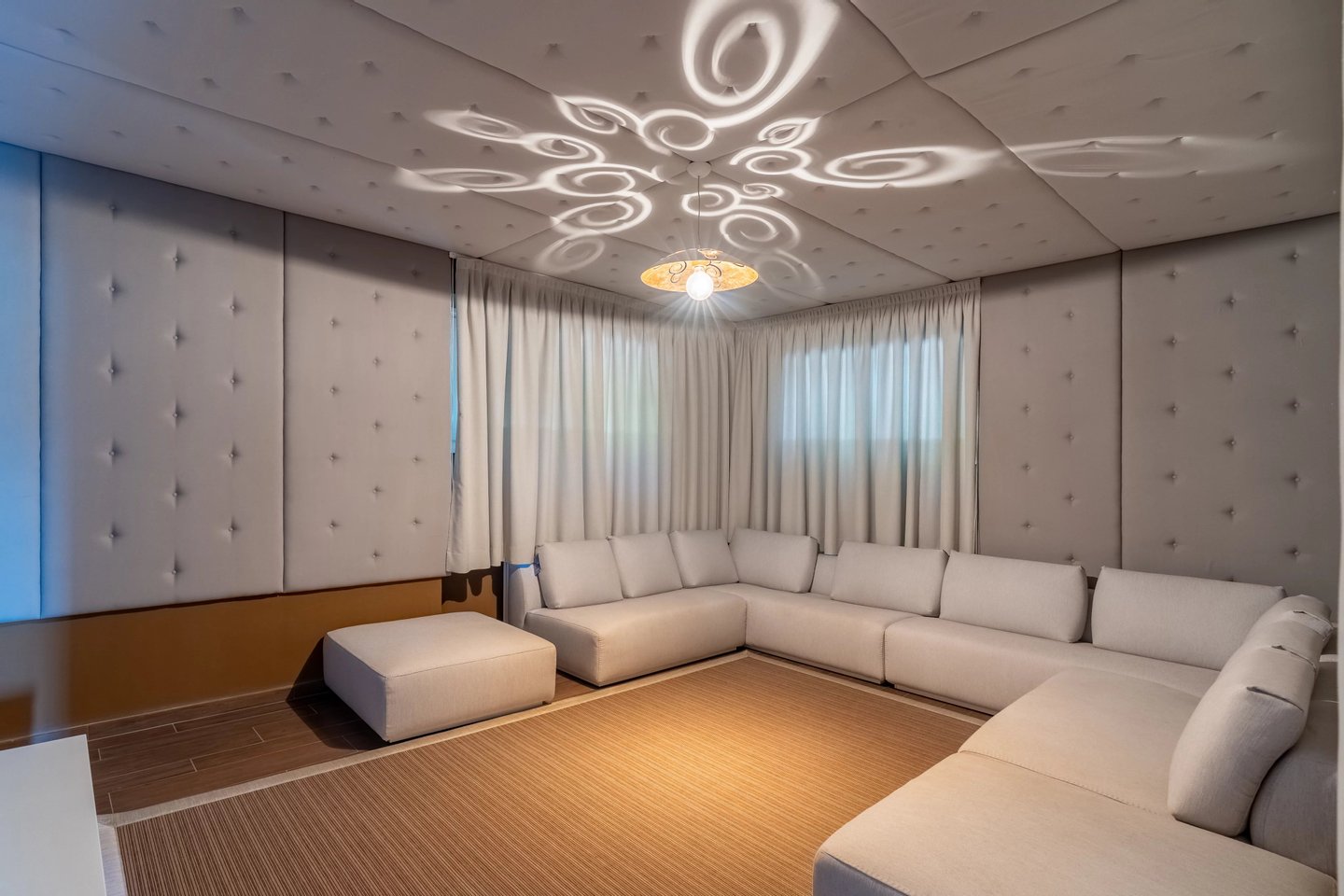 Im Erdgeschoss befinden sich Räume, die man mit Freunden teilen kann. Ein Fitnessraum, eine Sauna, ein schallisolierter Kinoraum, ein Billardzimmer, eine Serviceküche für diese Etage, ein Badezimmer und ein geräumiger Keller/Abstellraum.