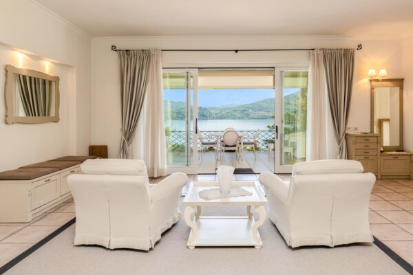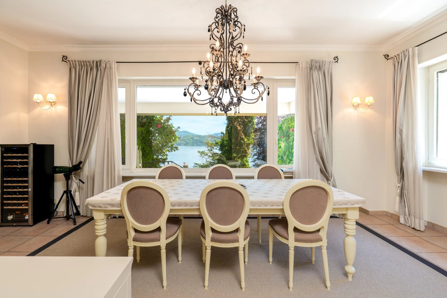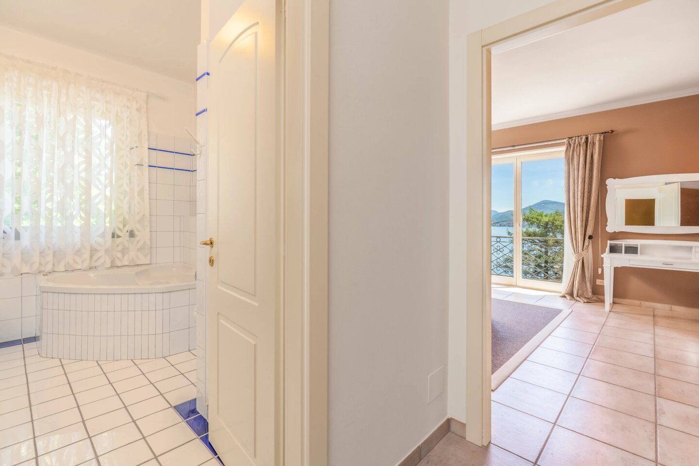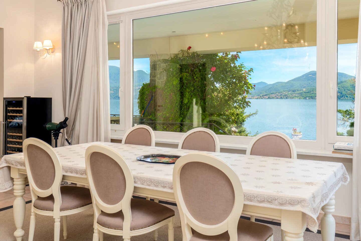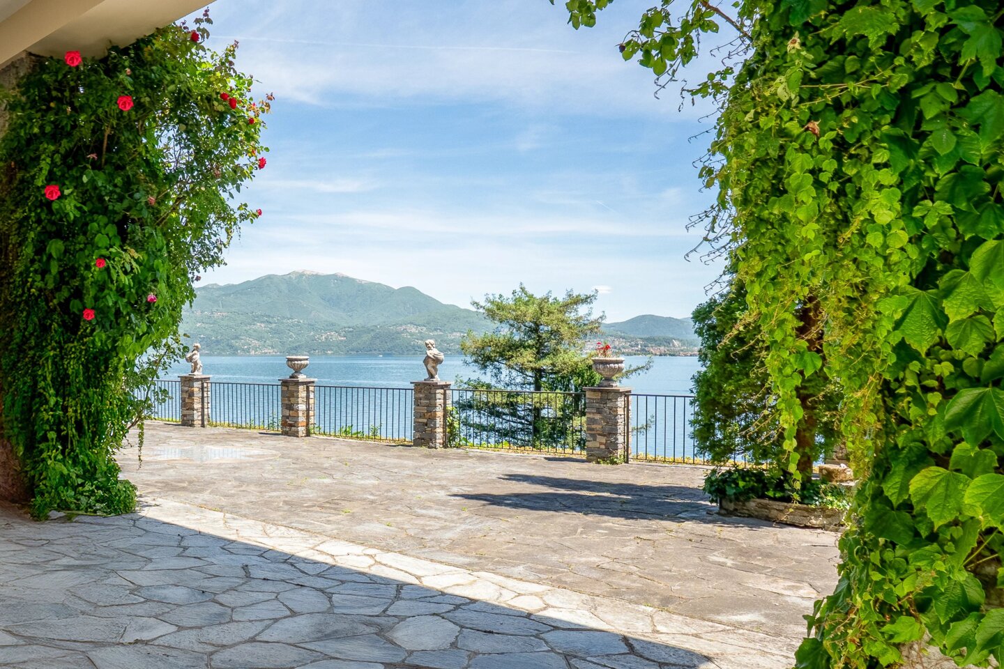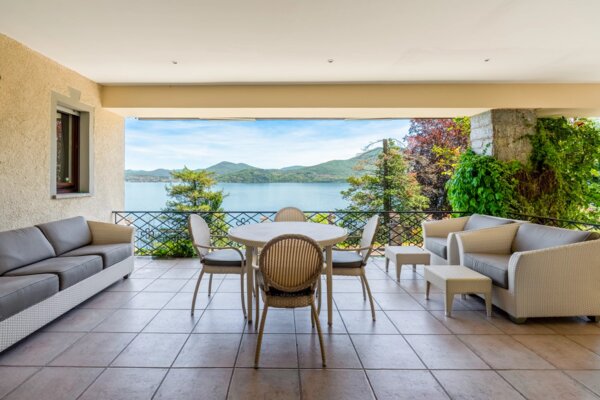 Am Eingang der Villa befindet sich ein großer Säulengang, ideal um den Blick auf den Lago Maggiore in einem schattigen Bereich zu genießen.