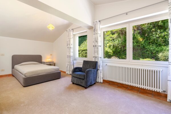 Angrenzend an das Hauptschlafzimmer befindet sich ein zweites Schlafzimmer mit einem weiteren Badezimmer.
