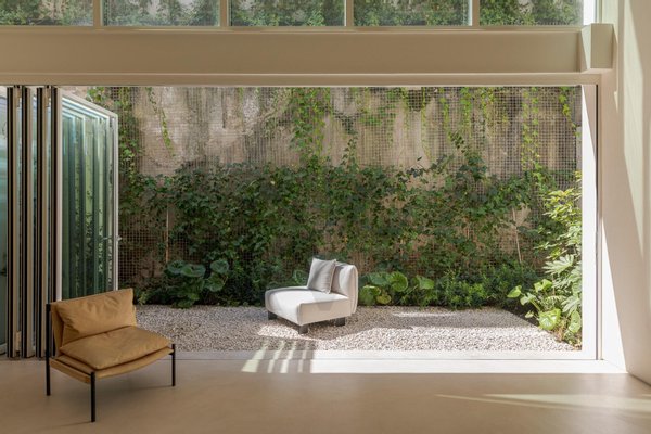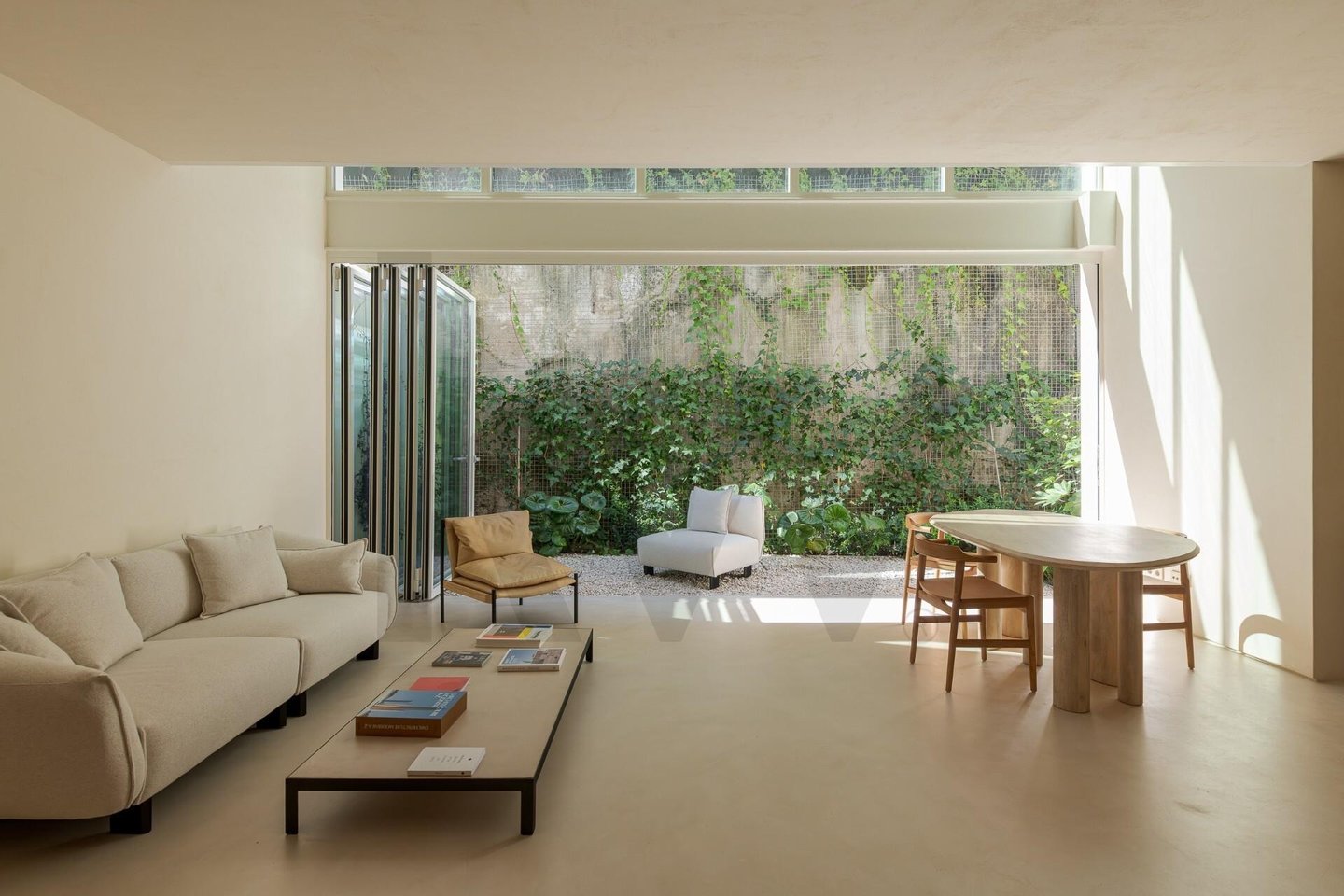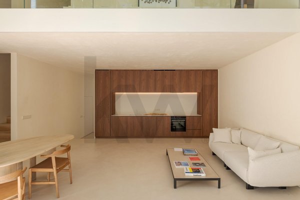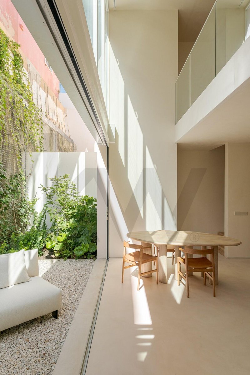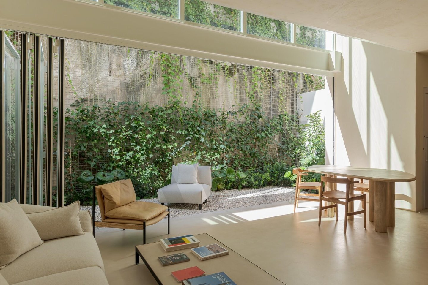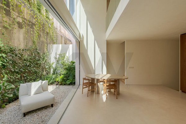 —> Breiter sozialer Bereich mit doppelt hoher Decke, verbunden mit der Küche und einer Terrasse von über 20 m² mit vertikalem Garten