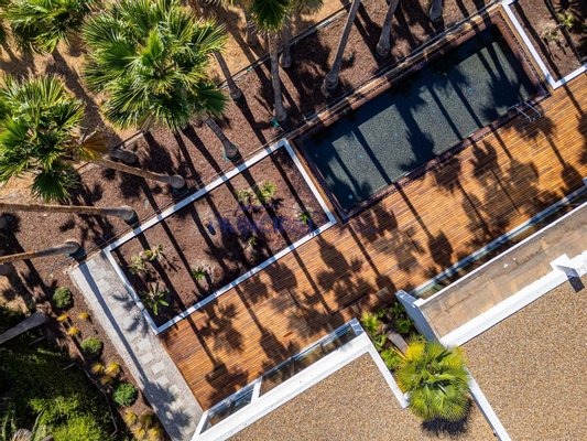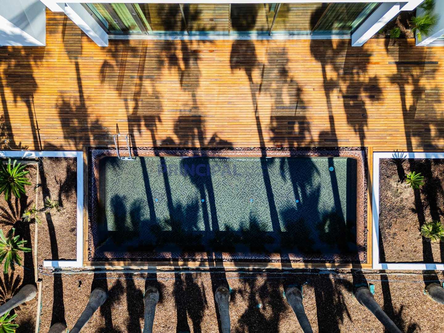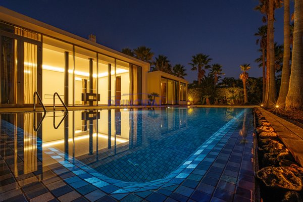 Draußen, im Süden, finden wir die Terrasse und den Swimmingpool, der ein modernes Design bietet, das mit den Elementen der Natur verschmilzt, gefiltert von Steinen für einen entspannenden Klang.