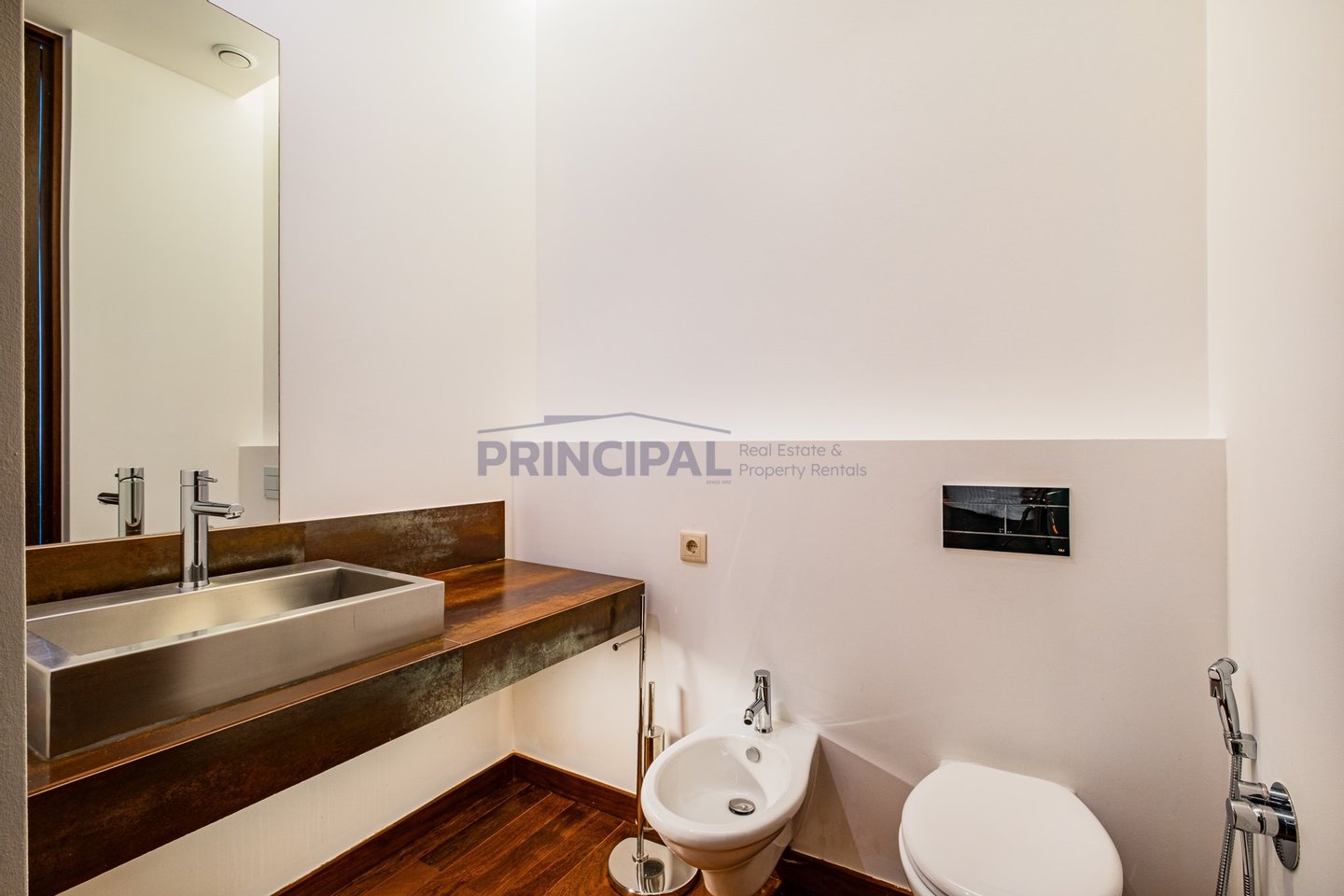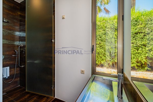 In der Master-Suite, einem der Highlights dieser Immobilie, finden wir einen Flur, das Dampfbad (türkisches Bad), einen offenen Kleiderschrank, das Schlafzimmer und ein Badezimmer mit Whirlpool und Dusche.