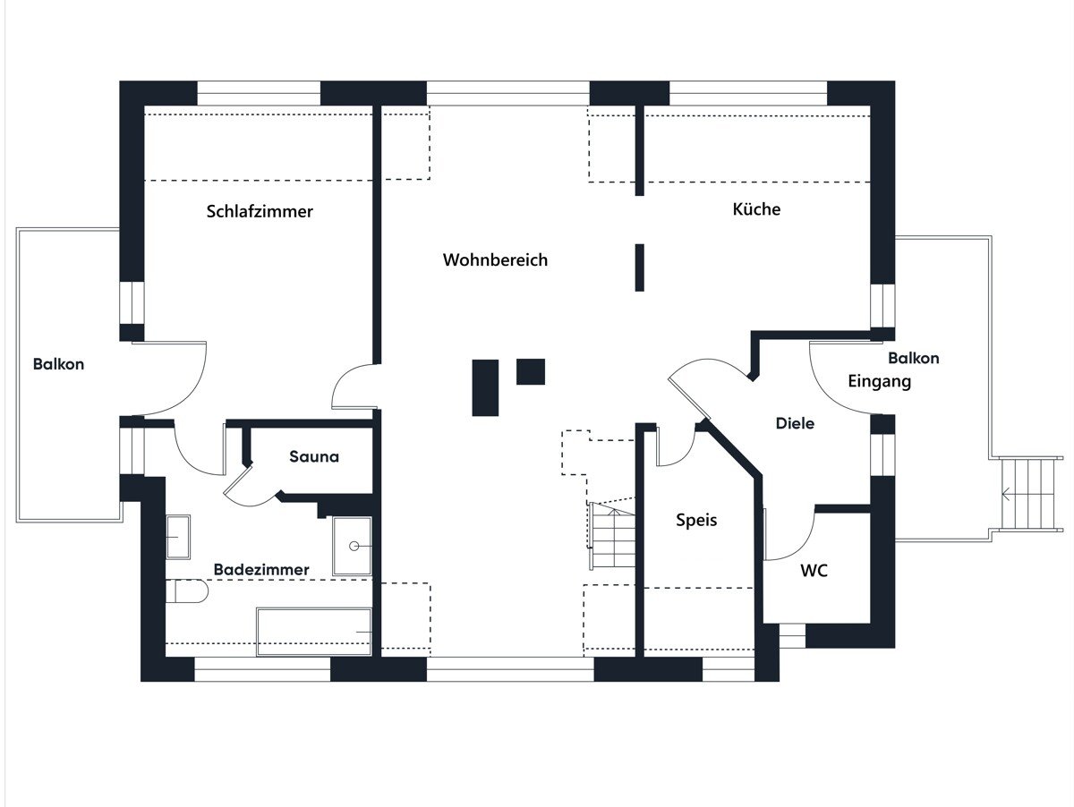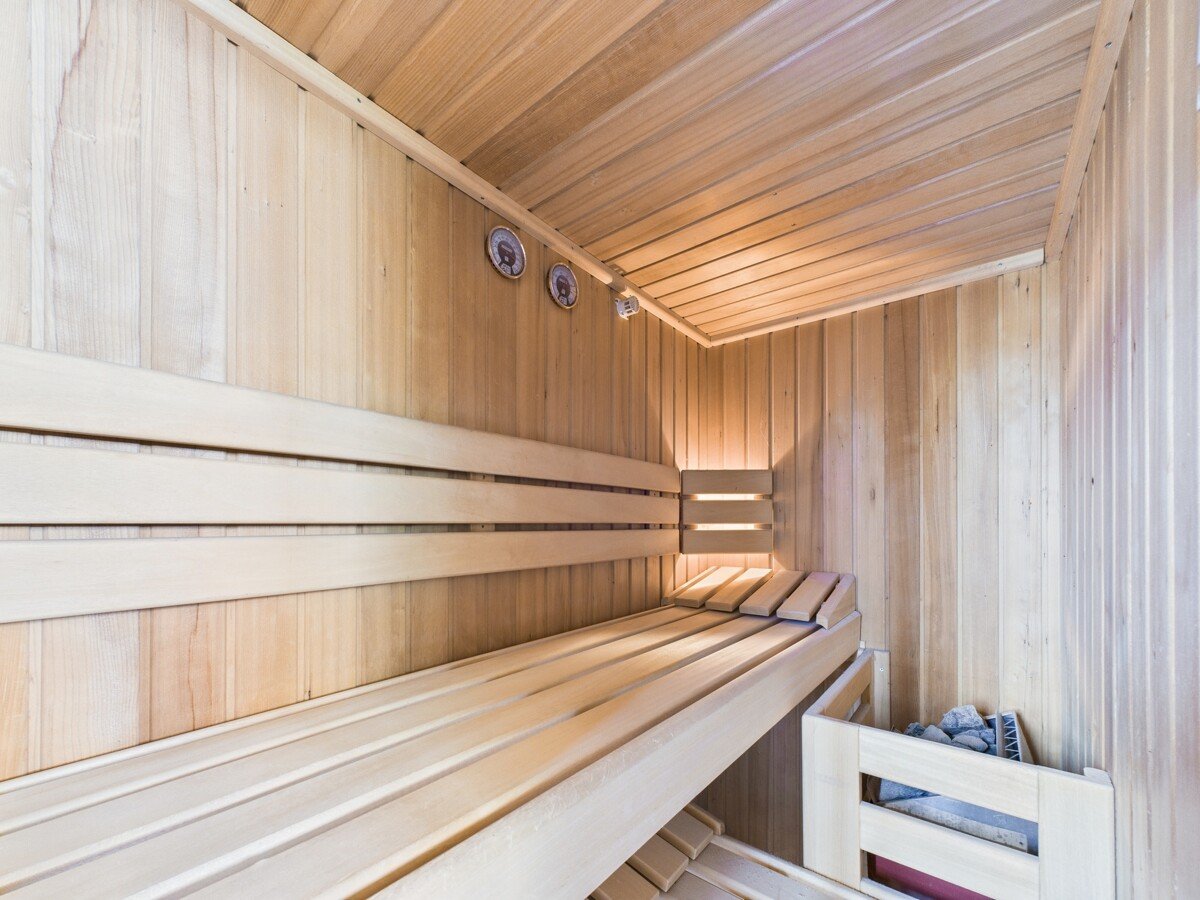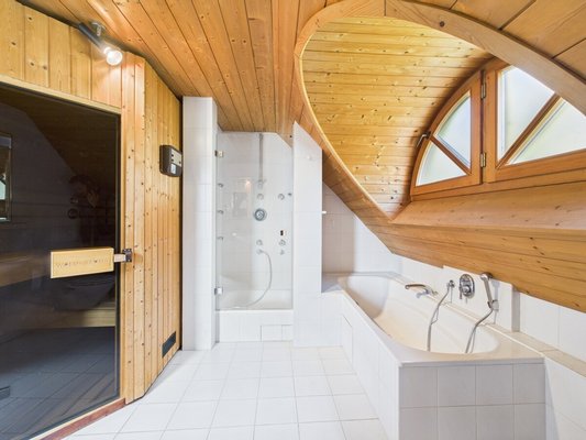 - Badezimmer 1: Dusche, Badewanne, Sauna (Schlafzimmerbereich)