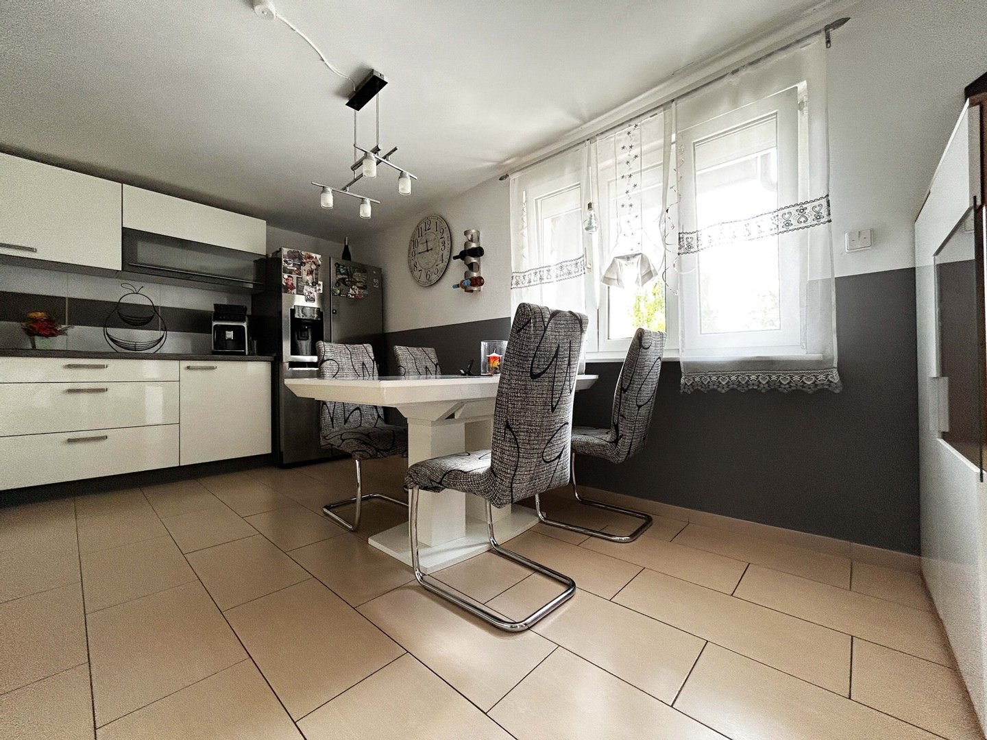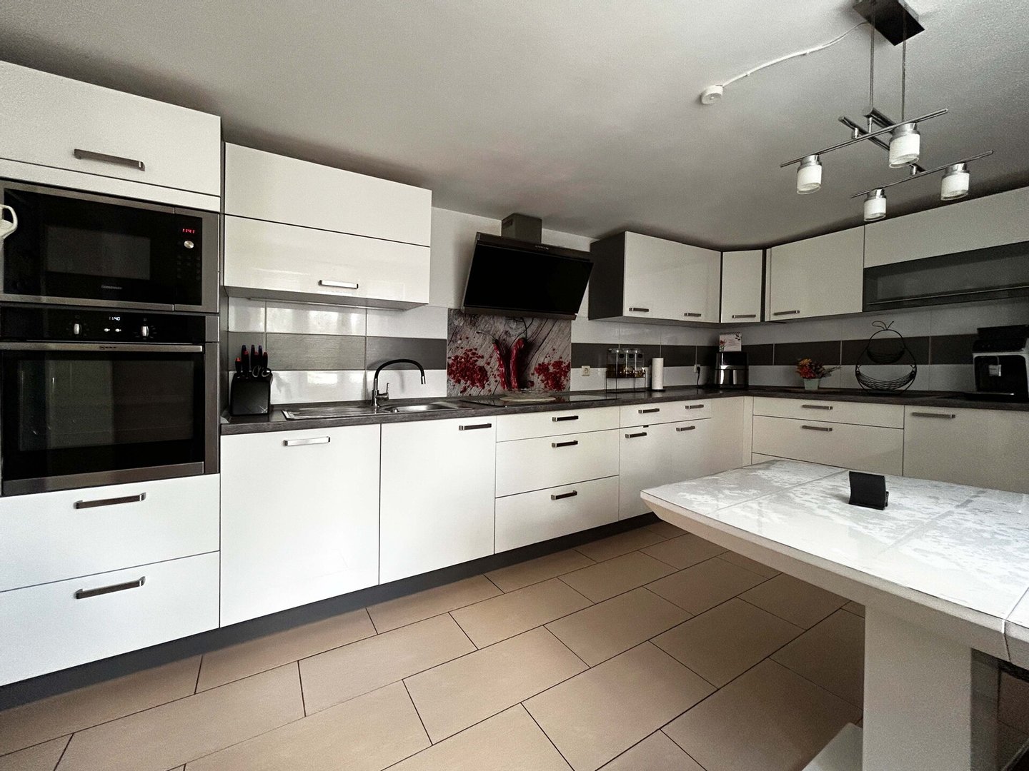Im unteren Bereich erwarten Sie eine großzügige Küche mit moderner Einbauküche und Essbereich, ein helles Wohnzimmer, ein modernisiertes Badezimmer mit Eckbadewanne, zwei Flure sowie zwei Hauswirtschaftsräume.