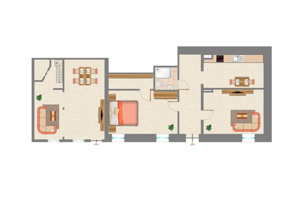 Die dritte Einheit wurde aus früheren Nutzräumen zu Wohnzwecken ausgebaut und wird auch entsprechend genutzt. Zwar zählt diese Fläche formell zur Nutzfläche, sie bietet jedoch einen klaren Mehrwert durch zusätzlichen Wohnraum. Auch hier bestehen gesicherte Mieteinnahmen. Auch dieses Mietverhältnis kann auf Wunsch der Mieter dauerhaft weitergeführt werden.