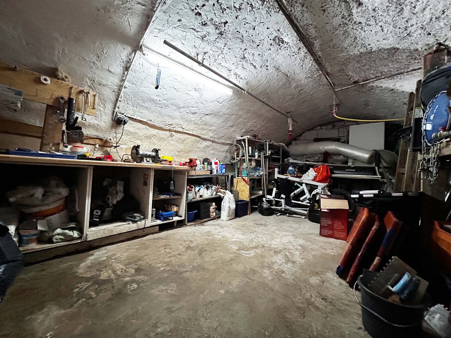Vom Garten aus führt eine Tür in den Gewölbekeller – trocken, kühl, massiv gemauert, mit Strom und Licht ausgestattet. Perfekt geeignet als Werkstatt, Weinkeller oder Stauraum.