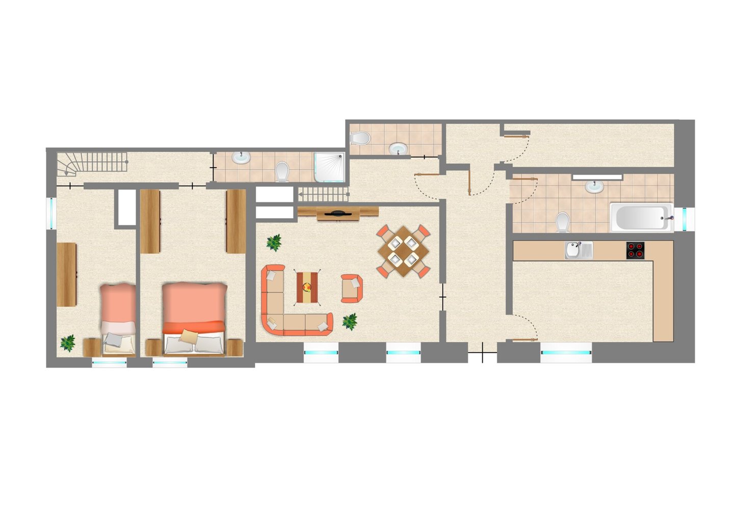 + Kapitalanleger, die Wohnung 1 wieder in die ursprüngliche Struktur aufteilen und so bis zu vier Wohneinheiten schaffen möchten