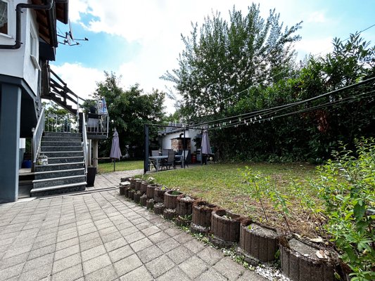Vor dem Haus lädt ein schöner Garten mit Terrasse zum Entspannen ein. Hier genießen Sie Ihre Freizeit – ideal für gemeinsame Stunden, Grillabende oder den Kaffee im Freien. Der Garten ist pflegeleicht angelegt. Zwei Stellplätze direkt am Haus sorgen für kurze Wege.