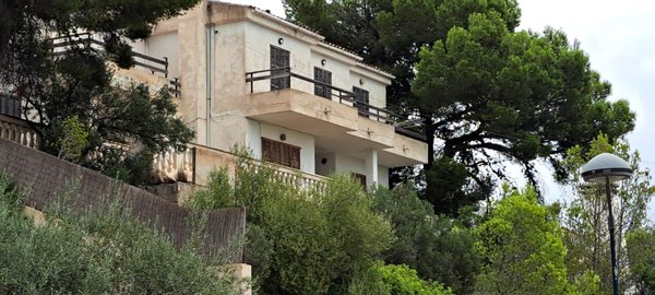 Chalet aus dem Jahr 1988, komplett renovierungsbedürftig oder für ein Neubauprojekt geeignet, in Costa den Blanes – Calvia. Mit Blick auf das Meer und die Bucht von Portal Nous, ca. 500 m in gerader Linie vom Meer entfernt, mit 1.045 m² Grundstück. Ca. 290 m² bebaute Wohnfläche plus offene Terrassen und Garage. Bestehend aus 4 Schlafzimmern, 3 Bädern, Wohnzimmer – Esszimmer, Küche, Waschküche und Abstellraum. Platz für Pool. Ein sehr interessantes Projekt in guter Lage.