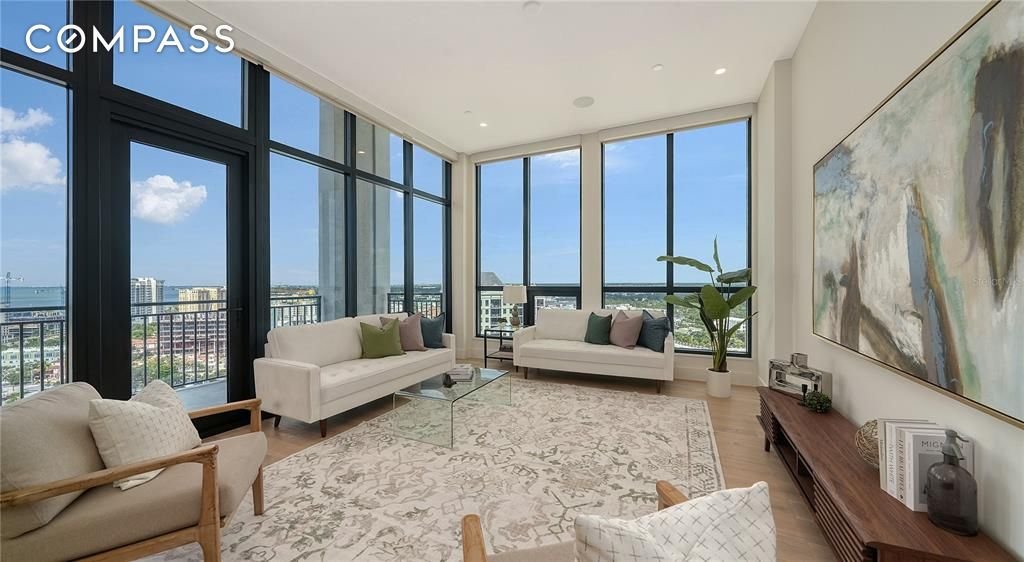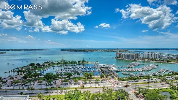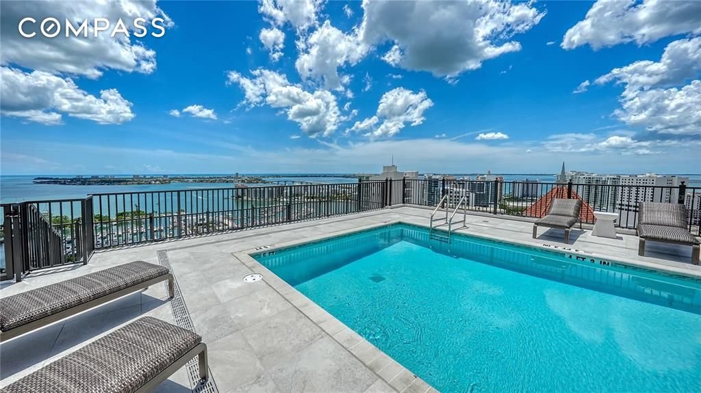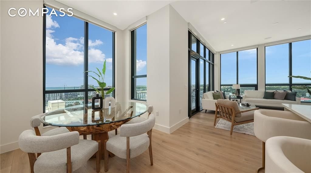 Erleben Sie den Gipfel moderner Eleganz in diesem brandneuen, noch nie bewohnten Penthouse im The DeMarcay - im Herzen der Innenstadt an der Palm Avenue, nur wenige Schritte von Sarasotas besten Restaurants, Kunstgalerien und Boutiquen entfernt. Hoch oben auf der 17. Etage gelegen, besticht diese Residenz mit zwei Schlafzimmern und zwei Bädern mit Panoramablick auf die Sarasota Bay, die Ringling Bridge und die Skyline der Innenstadt. Große Fenster und 14 Fuß hohe Decken füllen den offenen Wohnbereich mit natürlichem Licht und schaffen eine nahtlose Verbindung zwischen Luxus im Innenbereich und atemberaubender Landschaft. Die Designerküche ist ein kulinarisches Schaufenster mit italienischen Schränken, Quarz-Arbeitsplatten und erstklassigen Miele-Geräten, darunter ein Gaskochfeld. Jedes Finish spiegelt durchdachte Raffinesse wider – von Parkett- und Porzellanfliesenböden bis hin zu maßgefertigten Schränken und einer geräumigen begehbaren Speisekammer. Die neutrale Farbpalette passt zu jeder Einrichtung. Automatisierte Fensterbehandlungen im gesamten Gebäude, mit Verdunkelungsrollos in der Hauptsuite, sorgen für Bequemlichkeit und Komfort. Die Hauptsuite verfügt über einen geräumigen begehbaren Kleiderschrank mit maßgefertigten Schränken. Betreten Sie Ihre private Terrasse, um den Sonnenuntergang zu genießen, oder ziehen Sie sich in die Dachoase auf der 18. Etage zurück - komplett mit einem beheizten Salzwasserpool, einer Außenküche und mehreren Loungebereichen mit Blick auf die Bucht und die Skyline der Stadt. Zu den weiteren Annehmlichkeiten gehören ein hochmodernes Fitnesscenter und ein eleganter Clubraum für die Bewohner mit Essbereich, Lounge und Catering-Küche. Mit 24/7 Mitarbeitern vor Ort wird jedes Detail des täglichen Lebens mühelos verwaltet. Egal, ob Sie auf der Suche nach einem ganzjährigen Zuhause oder einem saisonalen Rückzugsort sind, dieses makellose Penthouse kombiniert raffiniertes Design, Annehmlichkeiten im Resort-Stil und eine unvergleichliche Adresse in der Innenstadt von Sarasota. Kommen Sie und sehen Sie es sich noch heute an!