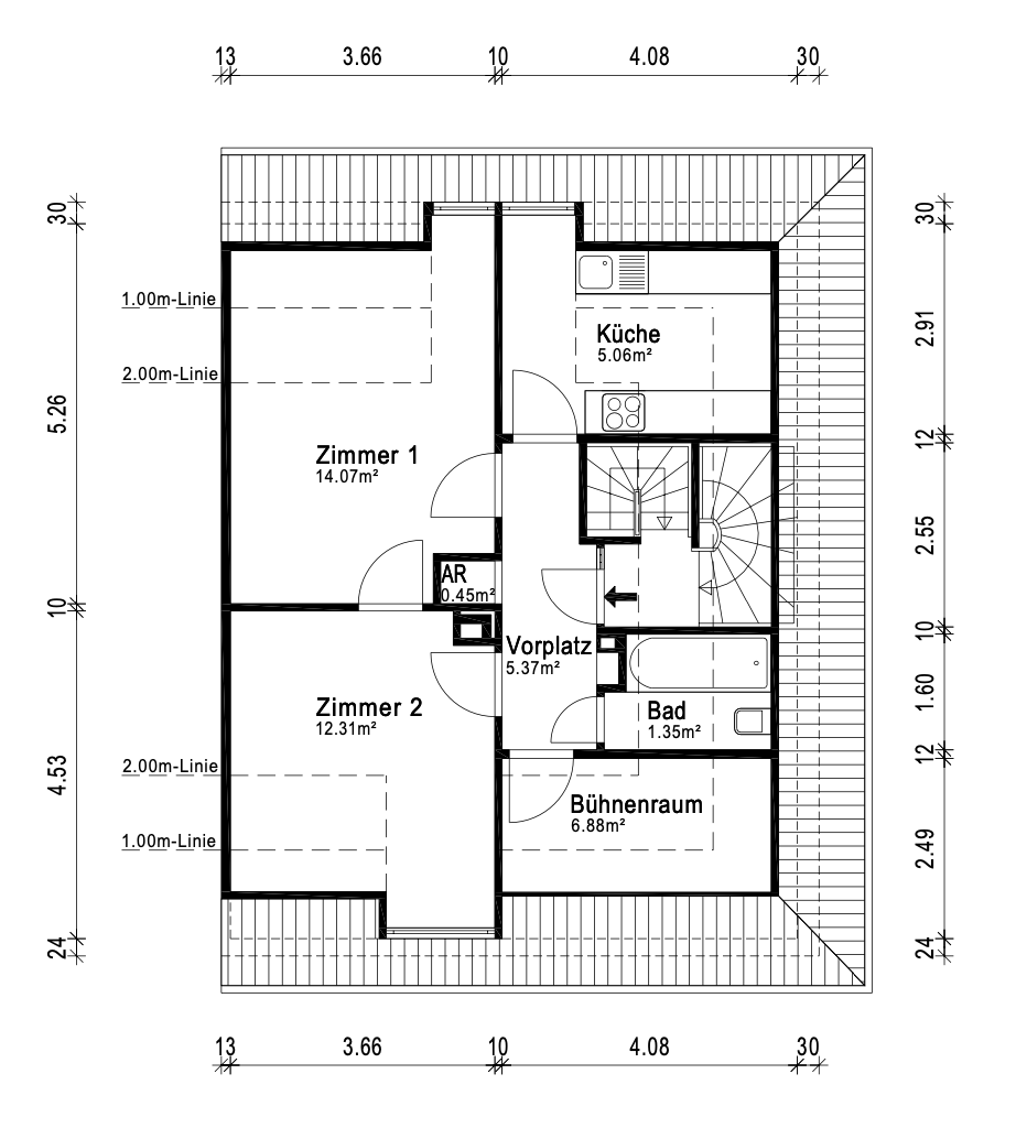 Im Untergeschoss befinden sich ein großzügiger Hobbyraum, ein Trockenraum, ein Gäste-WC sowie ein großer Gewölbekeller. Ein Stellplatz direkt vor dem Haus sorgt für optimalen Komfort. Die Erdgeschosswohnung verfügt über drei Zimmer (ca. 73 m²) mit optimalem Schnitt und bietet direkten Zugang zum Garten – ein klarer Mehrwert für die Mieter. Auch die 3-Zimmer-Wohnung im Obergeschoss ist großzügig geschnitten (ca. 70 m²) und punktet mit einem Balkon. Im ausgebauten Dachgeschoss befindet sich eine gemütliche 2-Zimmer-Wohnung (ca. 39 m²) mit Küche und WC. Eine angrenzende Bühnenfläche bietet zusätzlichen Stauraum und rundet das Raumkonzept ab.