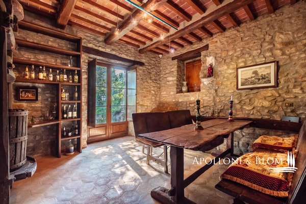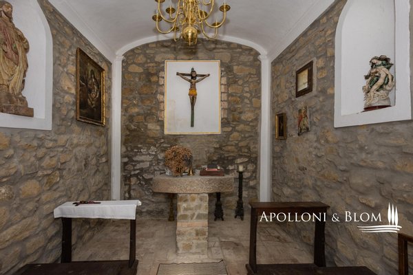 Typ: Bauernhaus von ca. 478 qm auf drei Ebenen mit privater Kapelle, Anbau mit Dependance und Lagerraum von 160 qm, Holzofen, Garage, Land von 8 Hektar mit Park, Olivenhain und Weinberg