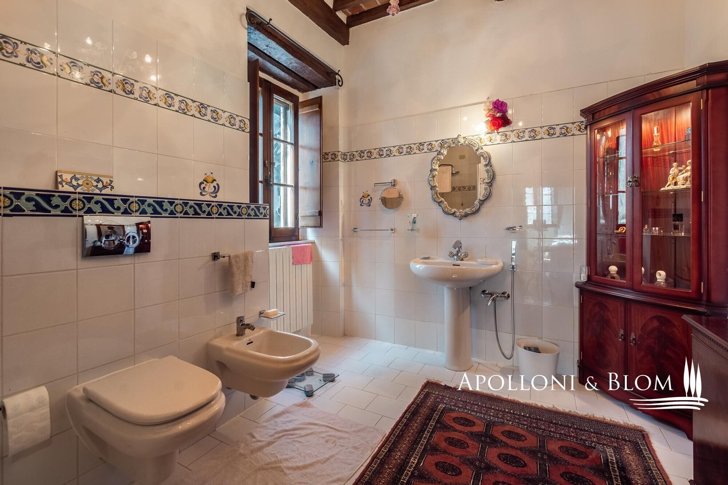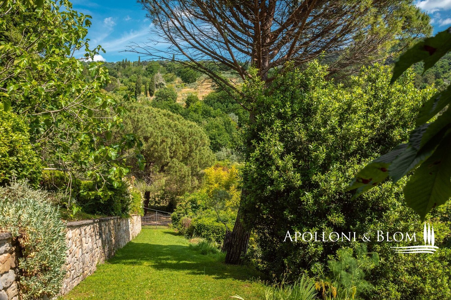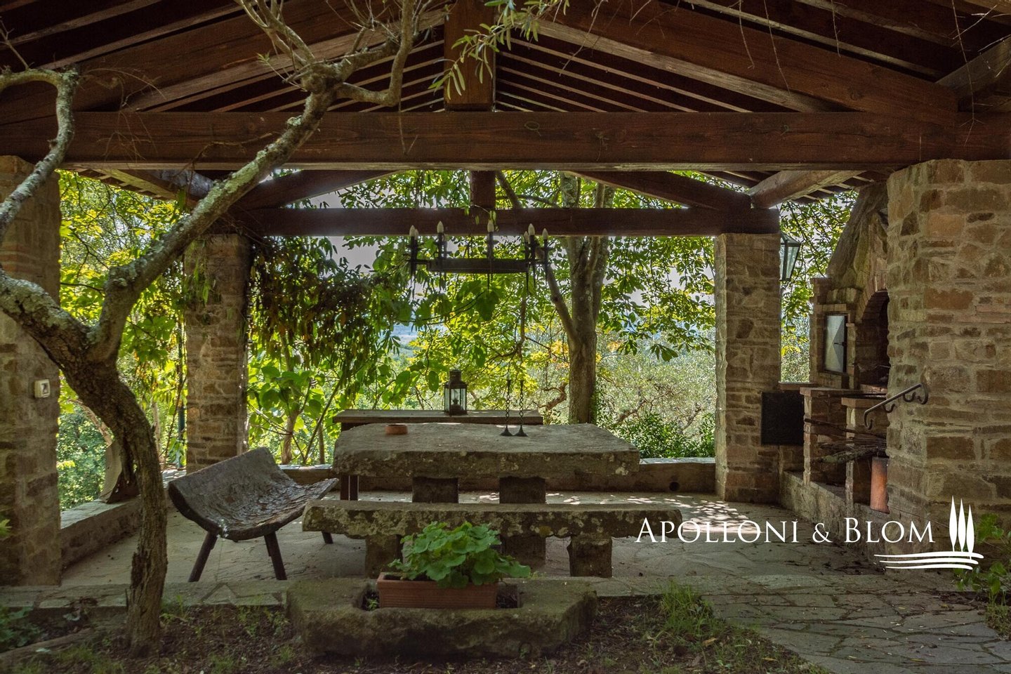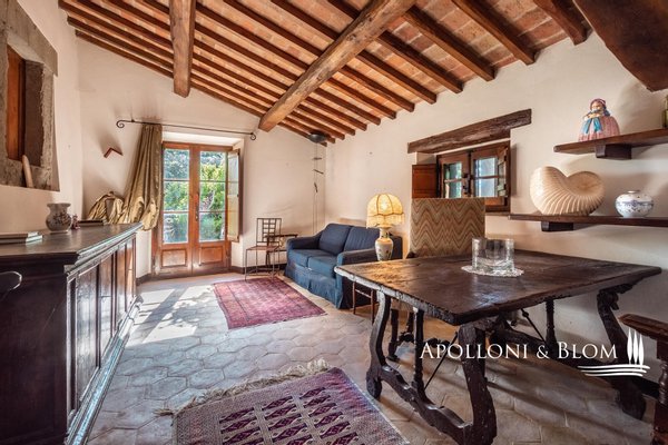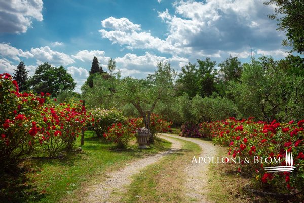 Bezaubernde Lage, fein restauriert mit Gästeanbau, privater Kapelle, Garage, Lagerraum, Olivenhain und Weinberg in Cortona zu verkaufen. Nur wenige Minuten vom historischen Zentrum entfernt, stellt diese prestigeträchtige Landvilla aus Stein eine einmalige Gelegenheit für diejenigen dar, die ein elegantes Anwesen in der Toskana suchen, das authentischen Charme und Potenzial sowohl als privater Wohnsitz als auch als wertvolle Investition bietet. Das Anwesen besteht aus dem Hauptwohnsitz, der gekonnt restauriert wurde und sich auf drei Ebenen über ca. 478 m² erstreckt, einer reizvollen, 20 m² großen Privatkapelle, einem großzügigen 160 m² großen Nebengebäude mit Gäste- und Abstellräumen, einer Garage mit drei Stellplätzen, weiteren landwirtschaftlichen Nebengebäuden und einem charmanten Pavillon mit Holzofen und gemütlichem Bereich mit Blick auf das Tal. Die Villa wurde einer sorgfältigen Restaurierung unterzogen, bei der die traditionelle Architektur aufgewertet und mit modernen Annehmlichkeiten kombiniert wurde. Die hellen und eleganten Innenräume sind mit Details aus der Zeit bereichert. Im Erdgeschoss befinden sich der Haupteingang, verschiedene Empfangsräume, darunter ein Wohnzimmer, ein Esszimmer, eine Küche mit Kamin, ein weiteres Wohnzimmer, ein Verkostungsraum und ein Badezimmer. Das erste Stockwerk öffnet sich zu einer Veranda mit einem Wohnzimmer, einem Schlafzimmer und einem Badezimmer, während das zweite Stockwerk einen Flur, drei Schlafzimmer und ein Badezimmer beherbergt, die alle einen beeindruckenden Blick auf die umliegende Landschaft bieten. Das Anwesen umfasst etwa 8 Hektar Land mit einem gepflegten Garten, einem Olivenhain mit 1.100 Bäumen, einem Obstgarten, Ackerland und einem kleinen Weinberg von etwa einem halben Hektar, mit der Möglichkeit der Erweiterung. Ein Teich mit einheimischer Fauna und der Panoramapavillon tragen zu einer authentischen und raffinierten Atmosphäre bei. Ausgestattet mit Klimaanlage in allen Räumen, Heizung, Alarmanlage und gepflegten Außenanlagen eignet sich dieses Anwesen sowohl als repräsentativer Privathaushalt als auch als Investition mit hervorragendem Potenzial im Gastgewerbe. Verkehrsgünstig gelegen, nur 1 km von den wichtigsten Dienstleistungen entfernt.