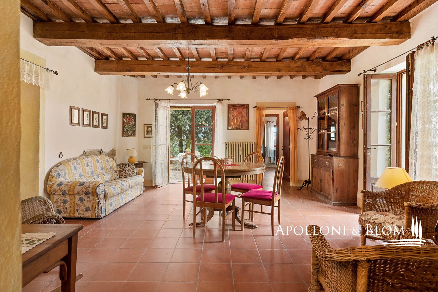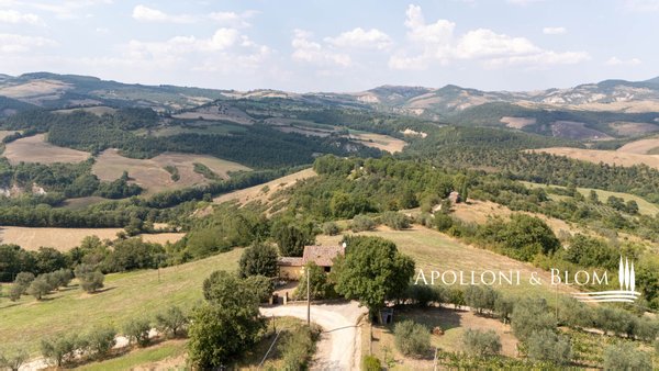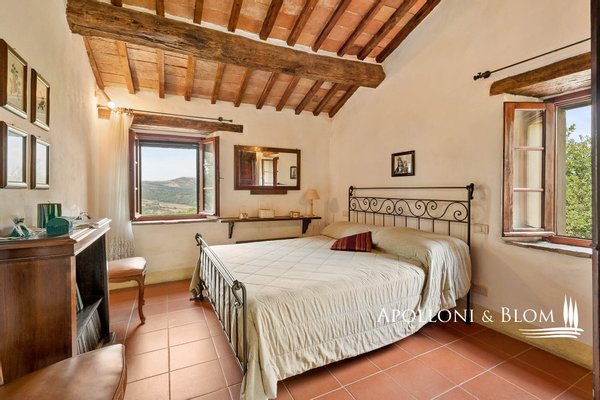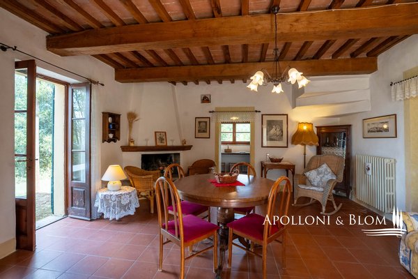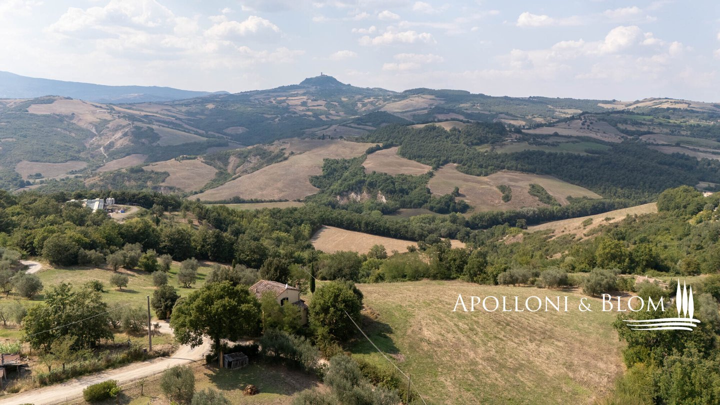 In exklusiver Panoramalage mit 2,6 Hektar Land steht eine zweistöckige, möblierte und bezugsfertige Villa in der Nähe von San Casciano dei Bagni zum Verkauf. Eingebettet in den zeitlosen Charme der sienesischen Landschaft, steht diese Villa auf den sanften Hügeln von Celle sul Rigo, nur wenige Minuten von den berühmten Thermalbädern von San Casciano dei Bagni entfernt. Das mittelalterliche Dorf, das auf eine lange Geschichte zurückblicken kann und in dem schon berühmte Persönlichkeiten wie der Dichter Giosuè Carducci zu Gast waren, bietet ein einzigartiges Ambiente, in dem man leben oder unvergessliche Ferien verbringen kann. Eine kurze, weiße Straße durch Wälder und Hügel eröffnet endlose Ausblicke, die bis zur historischen Festung von Radicofani reichen, und bietet ein Gefühl von völliger Privatsphäre und Kontakt mit der Natur. Die Villa, die aus einem typischen Bauernhaus aus dem 18. Jahrhundert restauriert wurde, erstreckt sich auf zwei Ebenen über 148 Quadratmeter und bewahrt die authentische Atmosphäre der damaligen Zeit. Der Portikus und die charakteristische Außentreppe heißen den Ankommenden willkommen, während sich die ockerfarbenen Putzfassaden harmonisch in die umliegende Landschaft einfügen. Im Inneren sorgen Holzbalkendecken, Terrakottaböden und doppelt verglaste Holzfenster für ein warmes und helles Ambiente. Im Erdgeschoss befinden sich ein Wohnzimmer mit Kamin, eine Küche, ein Schlafzimmer mit Doppelbett und ein Badezimmer, während das Obergeschoss, das über die Innentreppe oder die Außenveranda zu erreichen ist, zwei Schlafzimmer mit Doppelbett und ein zweites Badezimmer beherbergt und somit Privatsphäre und Komfort für die ganze Familie oder Gäste bietet. Die Villa ist komplett möbliert und bezugsfertig und verbindet Eleganz und Funktionalität. Das Grundstück umfasst Wälder, Weiden und Ackerland, einen Garten mit der Möglichkeit, einen genehmigungspflichtigen Pool zu bauen, sowie Grünflächen für das Leben im Freien. Das Anwesen ist nur 1 km vom historischen Zentrum von Celle sul Rigo entfernt, das auch zu Fuß erreicht werden kann, und 6 km von San Casciano dei Bagni. Diese Villa stellt eine außergewöhnliche Gelegenheit für diejenigen dar, die einen charmanten Wohnsitz, einen Zweitwohnsitz inmitten der Natur suchen, entweder für den privaten Gebrauch oder für eine touristische Unterkunft.