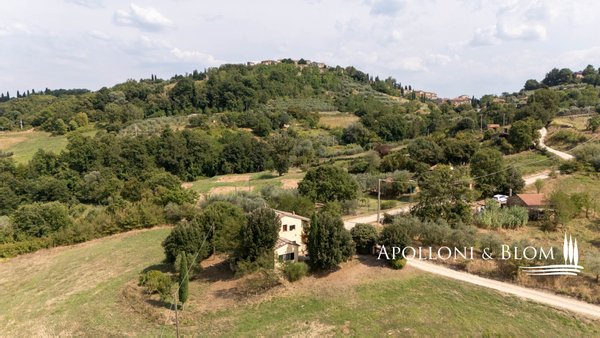 In exklusiver Panoramalage mit 2,6 Hektar Land steht eine zweistöckige, möblierte und bezugsfertige Villa in der Nähe von San Casciano dei Bagni zum Verkauf. Eingebettet in den zeitlosen Charme der sienesischen Landschaft, steht diese Villa auf den