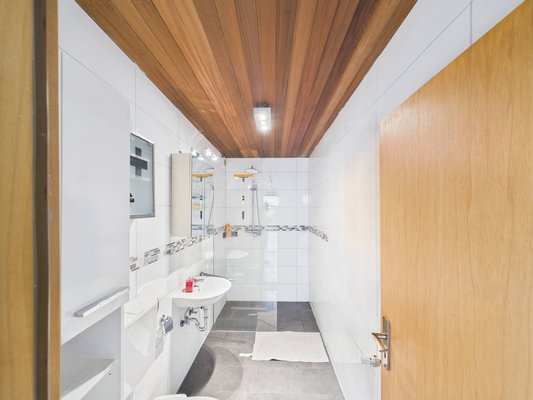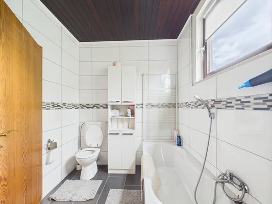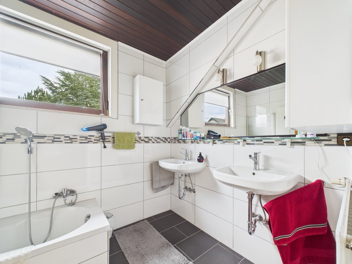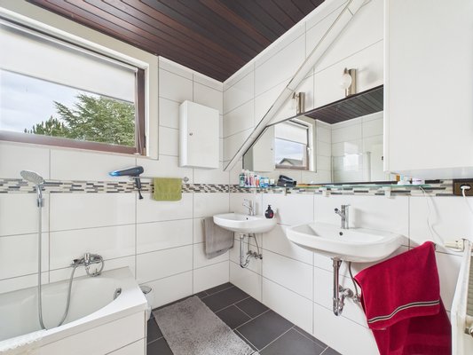 In beiden Schlafzimmern befinden sich im Kniestock zusätzliche tolle Ablageflächen. Ein geräumiges Badezimmer mit großer Badewanne, 2 Waschbecken und WC befindet sich ebenfalls auf dieser Etage.