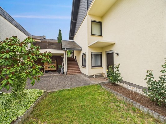 *große Terrasse (ca. 22 m²) im UG mit direktem Zugang zum Garten