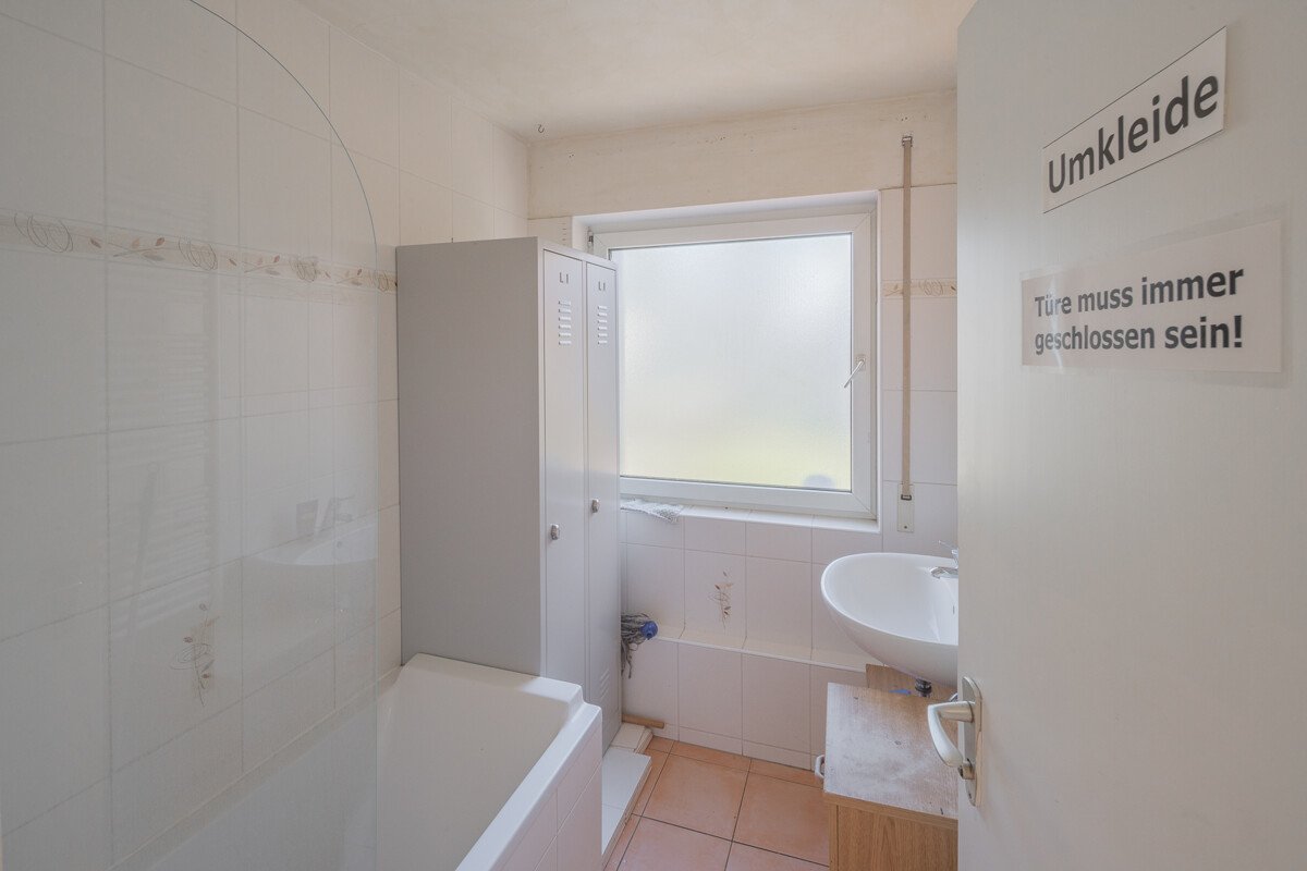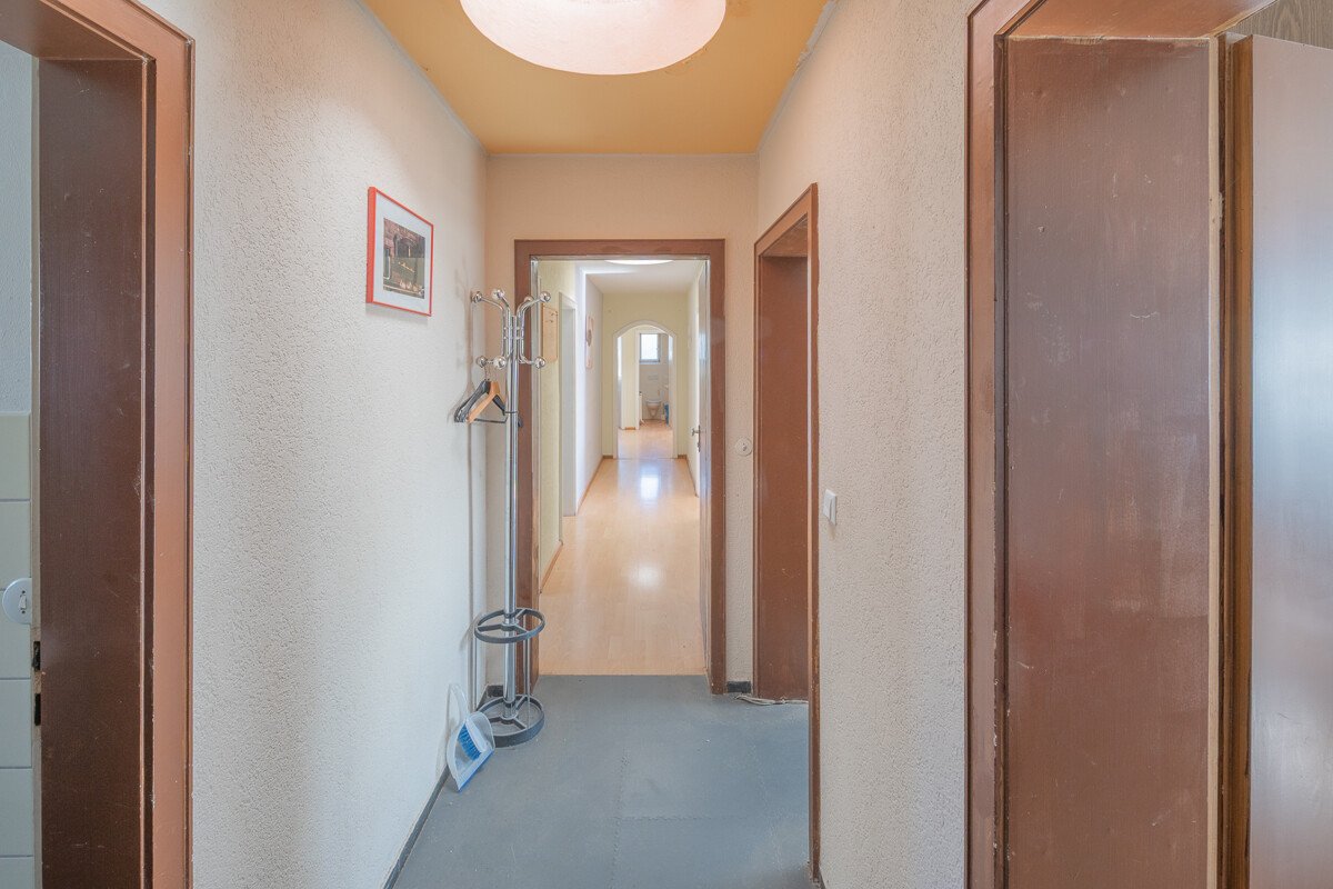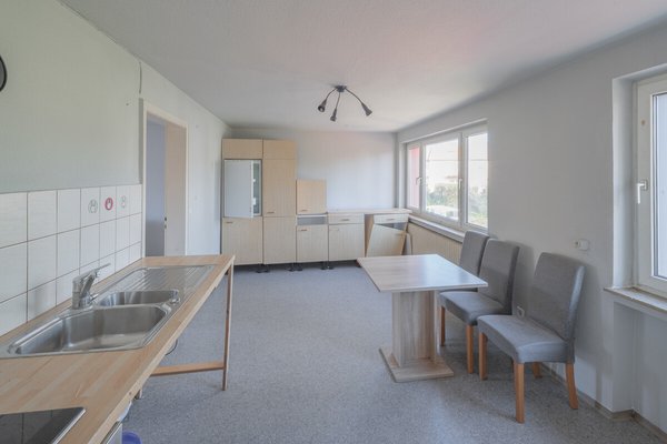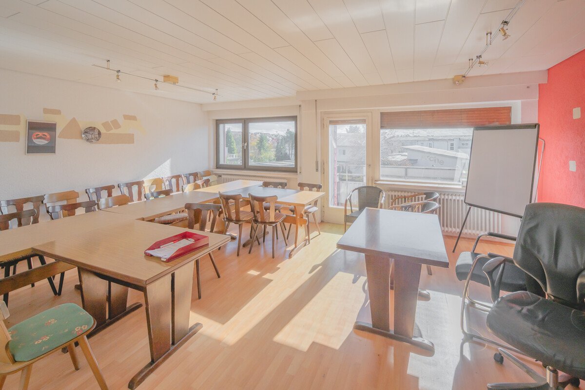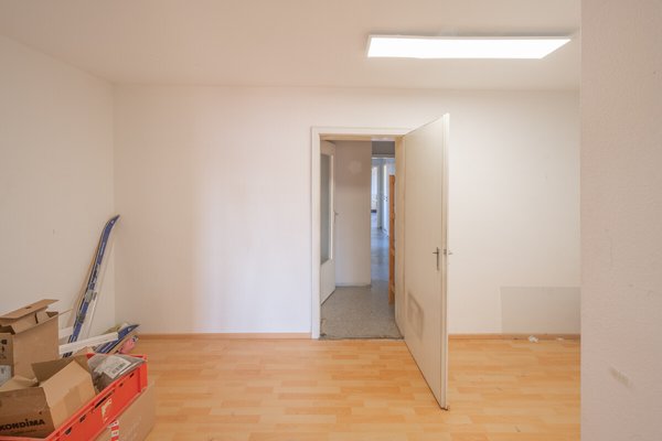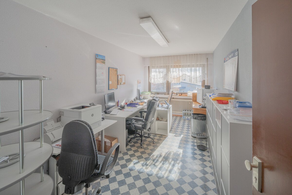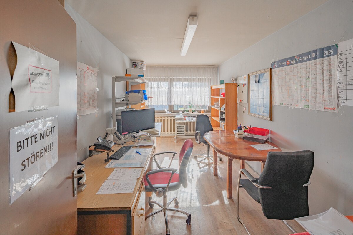 Im Obergeschoß befinden sich gegenwärtig Büro- und Lagerräume, die zu zwei 3 Zimmer Wohnungen und einr 2 Zimmer Wohnung ausgebaut werden könnten.
