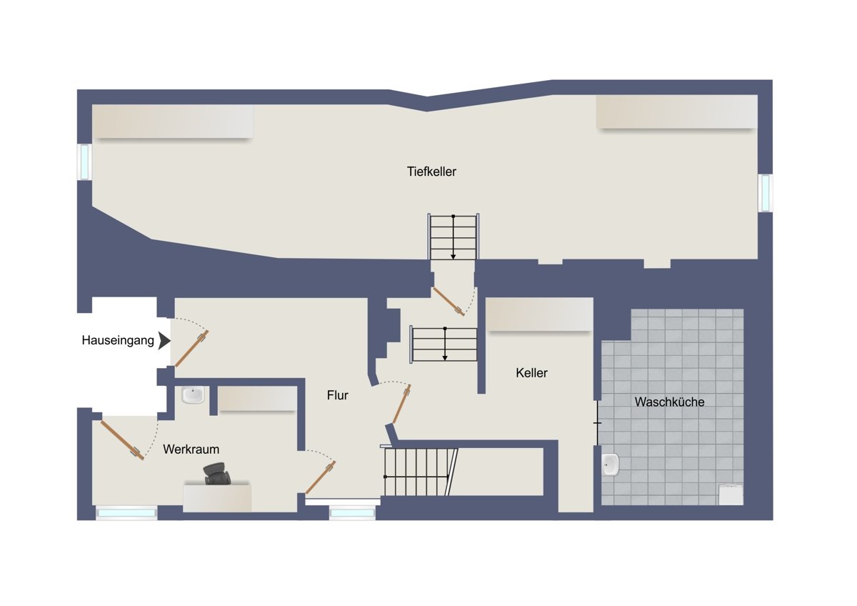 *Nutzfläche 61,85 m², aufgeteilt in Gewölbekeller, Speisekammer, Waschküche und Werkstatt