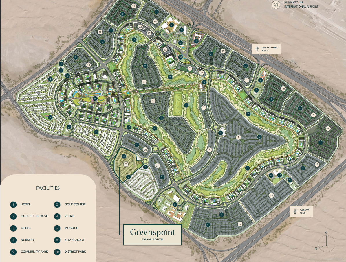 Die Immobilie befindet sich in dem begehrten Stadtteil Emaar South in Dubai. Dieser Standort besticht durch seine exzellente Lage und die Vielzahl an attraktiven Aspekten.