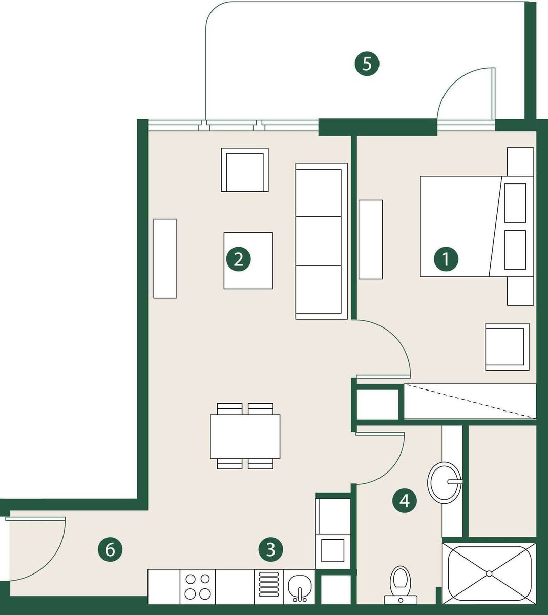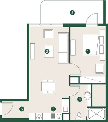 * Bedrooms: 1