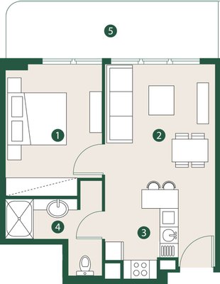 * Bedrooms: 1