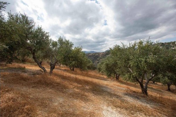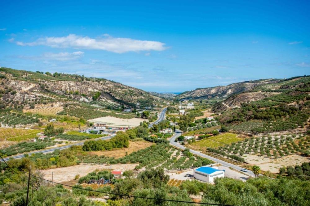 Landwirtschaftlich geprägt: Die Umgebung ist von Olivenbäumen, Weingärten und niedrigem Buschwerk geprägt – typisch für das zentrale Kreta.