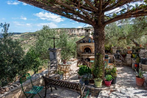 Zu verkaufen: 50 m² großes, offenes Einfamilienhaus mit herrlicher Aussicht, gebaut auf einem Grundstück von 4.676,82 m². Es wurde 1997 mit einer Baugenehmigung gebaut und hat eine verbleibende Baufläche von 136 m². Es besteht aus 2 Schlafzimmern, 1 Küche, 1 Wohnzimmer, Bad, Hof, Garten, Parkplatz und Grillplatz im Freien. Es verfügt über einen Kamin, einen Holzofen, einen Warmwasserbereiter. Es enthält 90 produktive Olivenbäume.