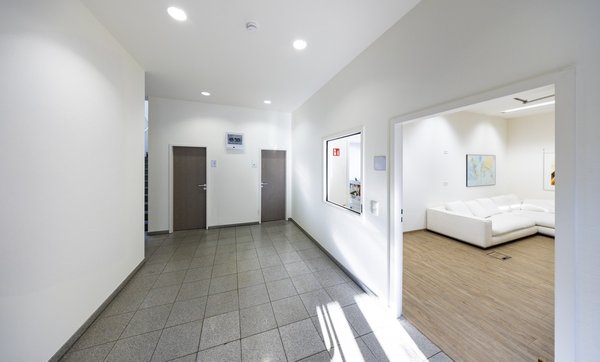 Die hier angebotene Liegenschaft umfasst ein Bürogebäude sowie eine große beheizte Lagerhalle aus dem Baujahr 1989 mit einer Raumhöhe von ca. 8 m. Der Zugang zu den gepflegten Büroflächen erfolgt über einen repräsentativen Eingangsbereich.