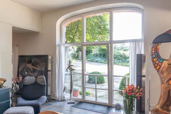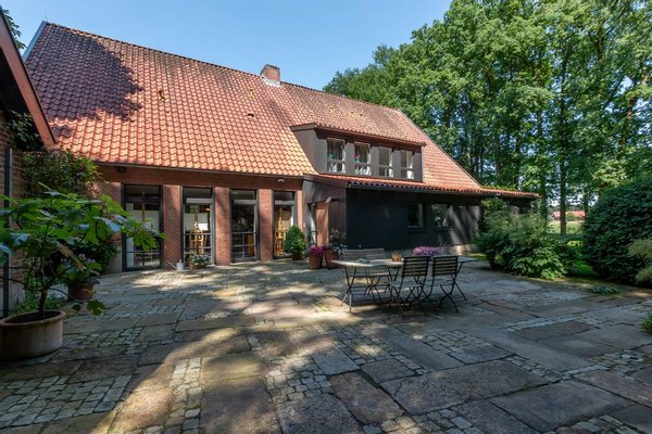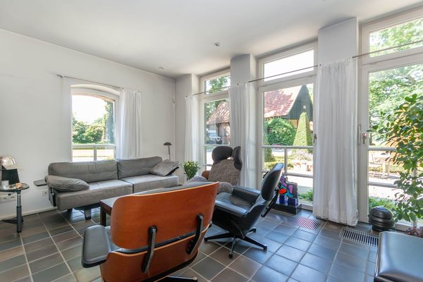 Das 1992 von Grund auf neu errichtete Wohnhaus besticht durch seine architektonische Qualität - geplant und umgesetzt durch den renommierten Nordhorner Architekten Breidenbend.