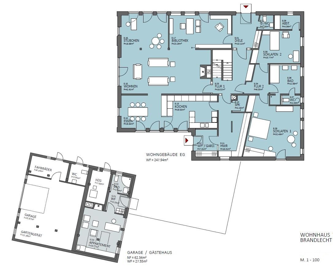 Das Anwesen vereint auf 443 qm Wohnfläche modernen Komfort mit ländlicher Eleganz. Das Wohnhaus zeichnet sich durch eine individuelle Raumgestaltung und durch eine klare und lichtdurchflutete Architektur mit hochwertigen Materialien aus. Es ist eingebettet in ein landschaftsprägendes Gebäudeensemble.